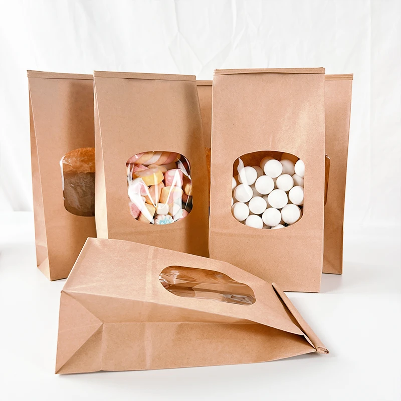 10 Stück Kraft papier Brotbeutel mit klarem Fenster selbst dichtende Tasche Süßigkei...