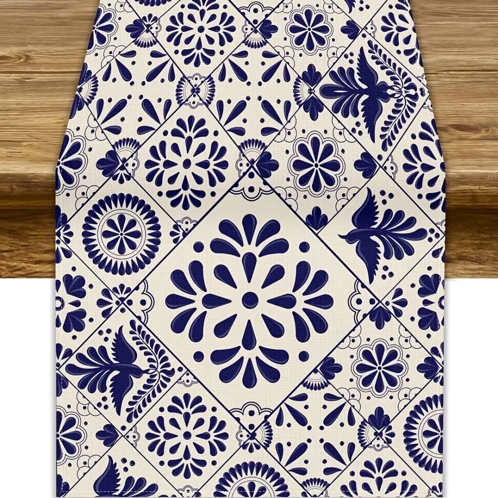 1 Stück, traditioneller mexikanischer Tischläufer, Tischläufer im Talavera-Stil, beig...