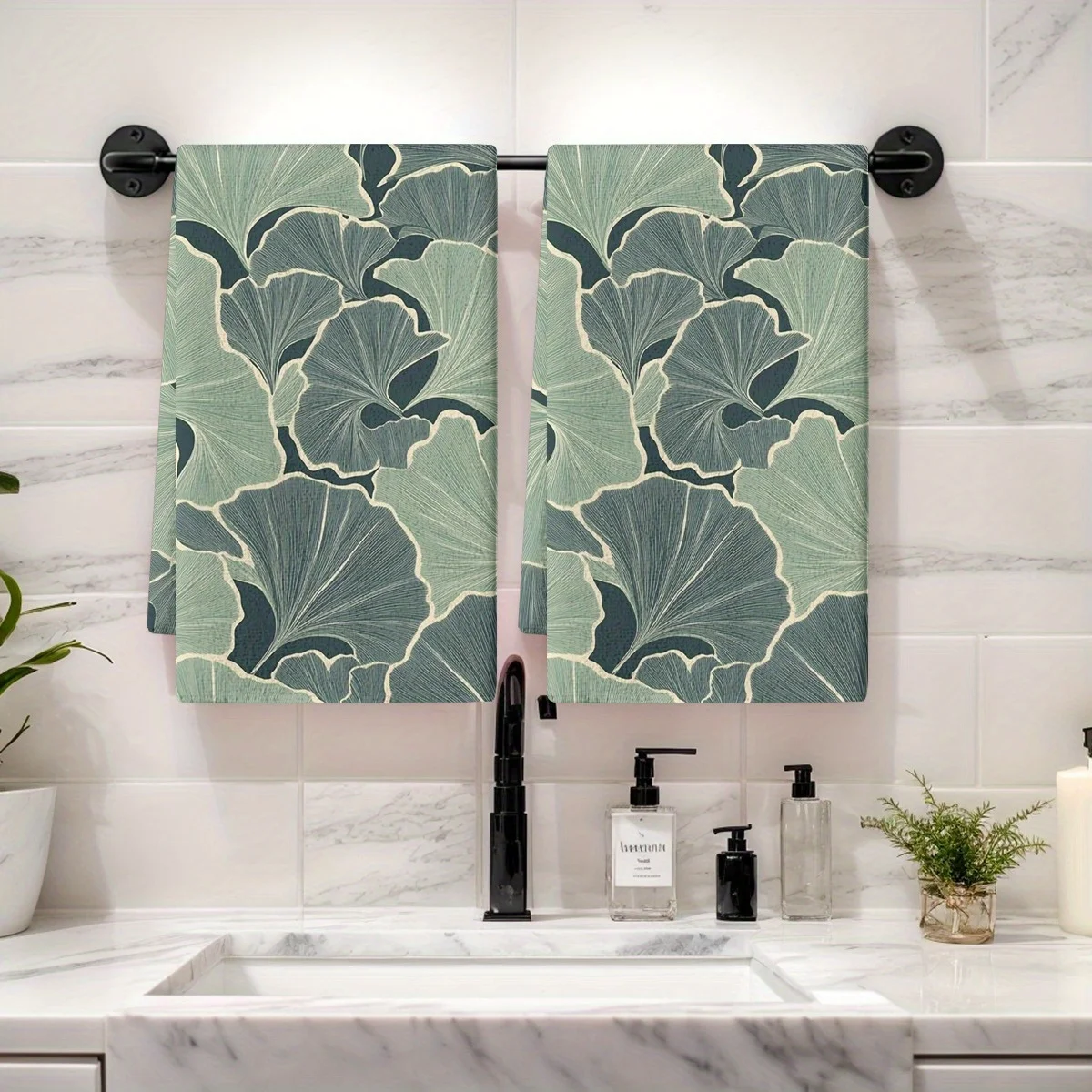 2PCS Weichen, Saugfähigen Küche Handtücher Geschirr Handtuch Elegante Ginkgo Blatt Bo...