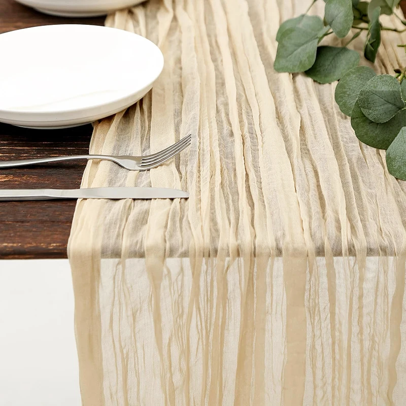 Halbtransparenter Gaze-Tischläufer, Salbei, Käsetuch, Tischdekoration, Esszimmer, Vintage,...