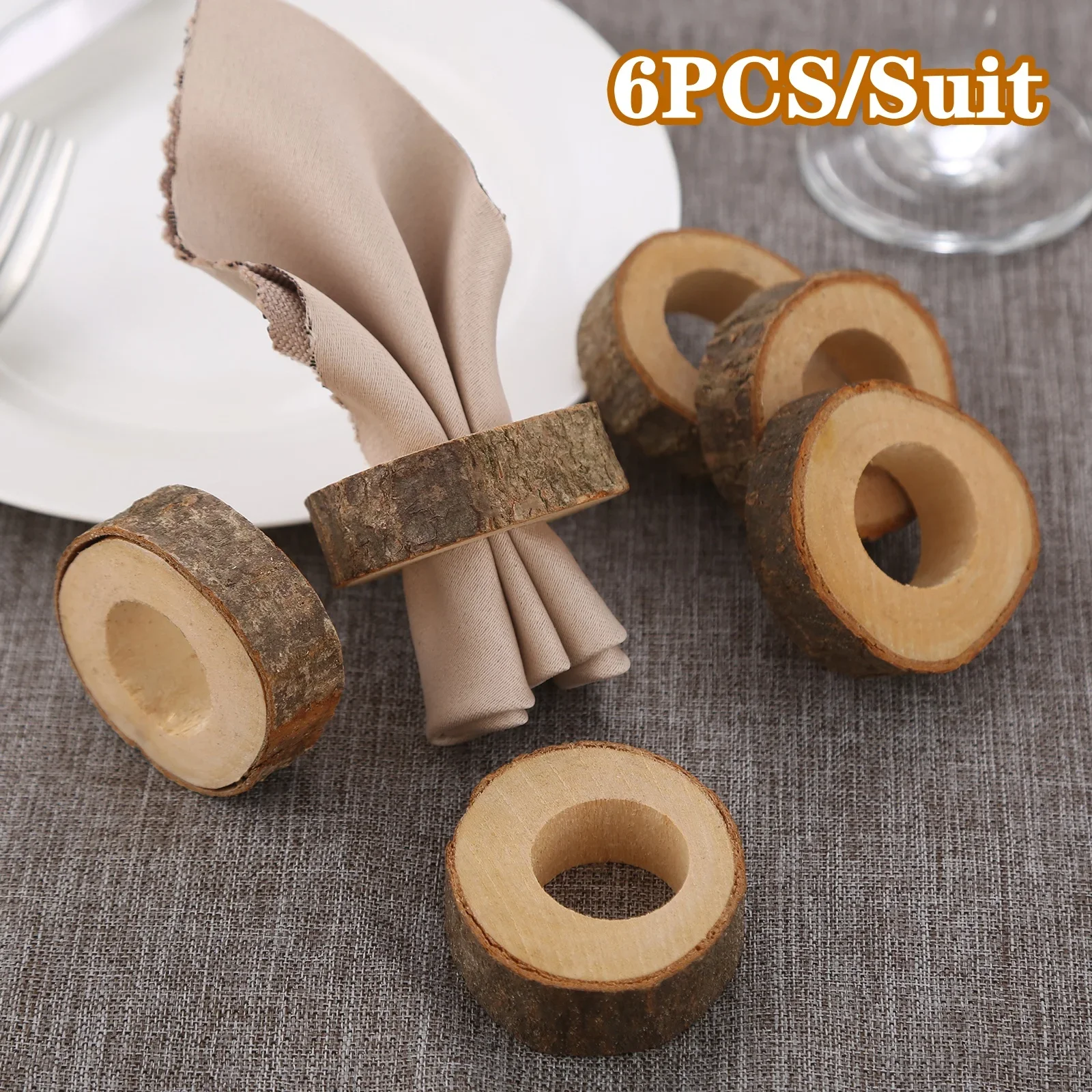 6 Teile/satz Kreative Holz Serviette Ringe Party Tisch Hochzeit Liefert Dekoration Rustikalen Vintag...