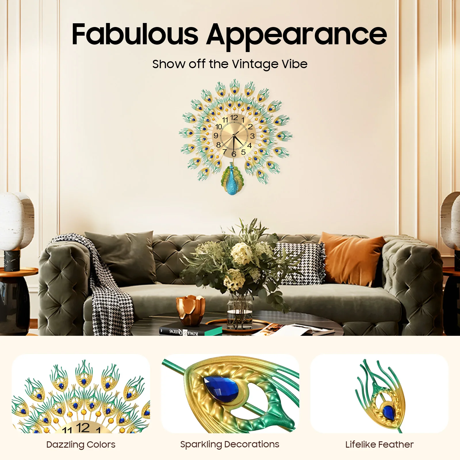 Pfau Wanduhr Metall Wanduhr 3D Pfau Design Wanduhr Wohnzimmer Metall Wanduhr Wohnzimmer Schlafzimmer...