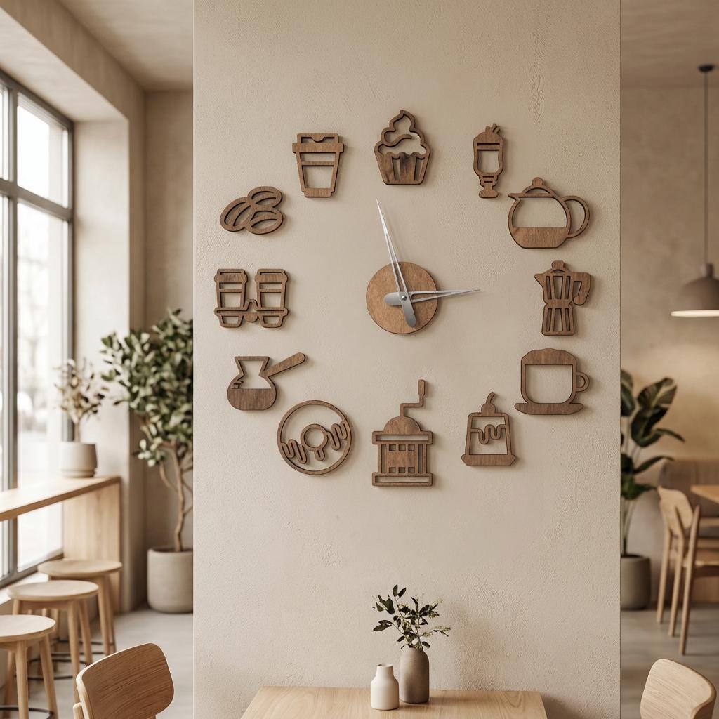Übergroße Coffee Shop Wanduhr - Rustikales & Stilvolles Dekor Bringen Sie Charme und ...
