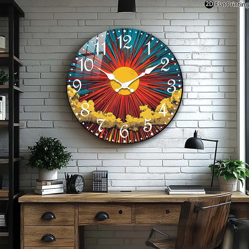 Stille Wanduhr aus Holz, abstrakte Sonnenbrandwolken, Quarz-Analogu...