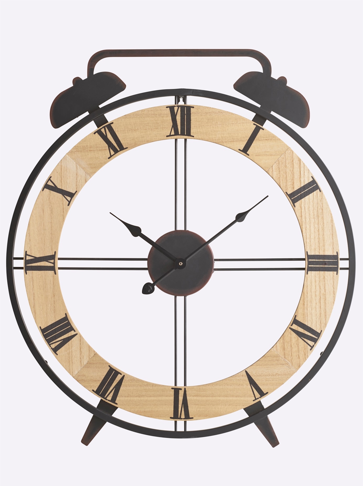 Wanduhr, schwarz, natur, Wanduhren, Damen, B/H/T: 50,5cm x 58cm x 3...