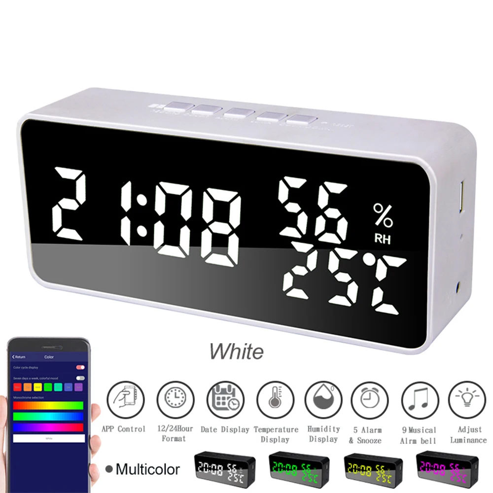 Wecker für Schlafzimmer 5 Alarme LED Display Spiegel Schreibti...