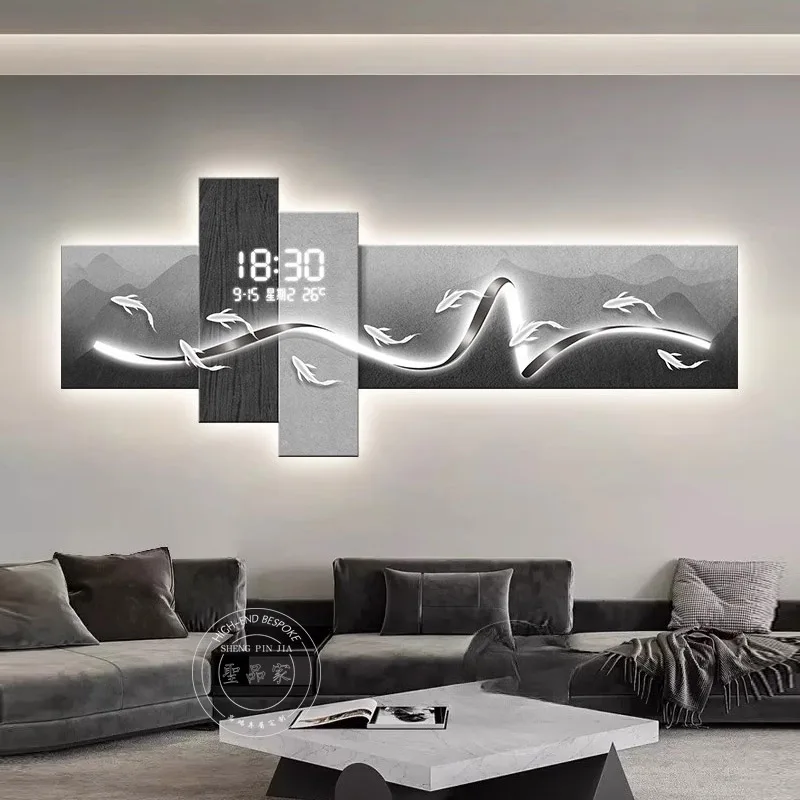 Luxuriöse Wohnzimmer-Wanduhr, großes Schlafzimmer, modernes Design, Licht, digitale Eckuh...