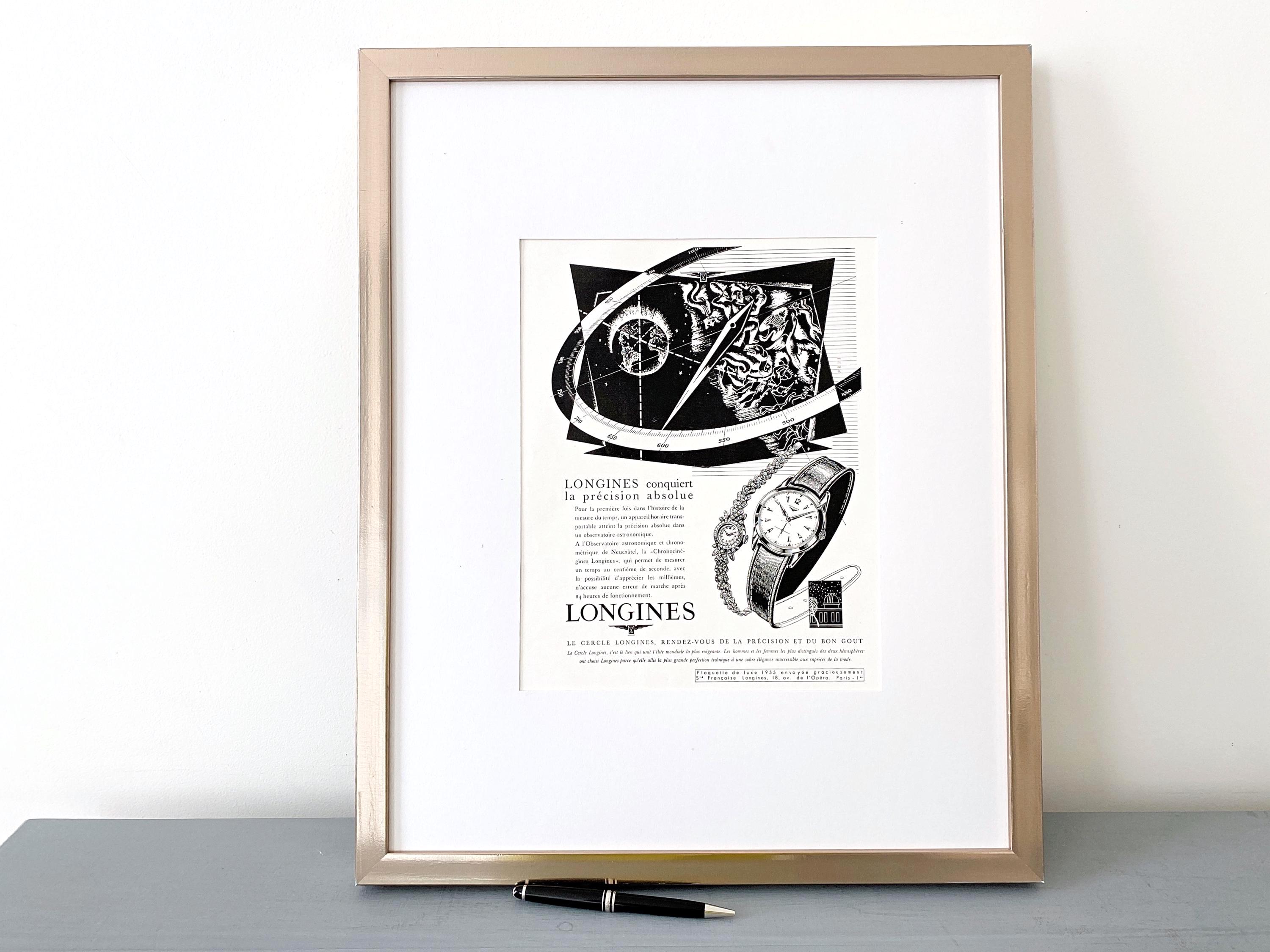 "Eine ganzseitige seltene Longines-Uhren-Werbung, die im Zeitraum 1843-1955 veröffentlicht...