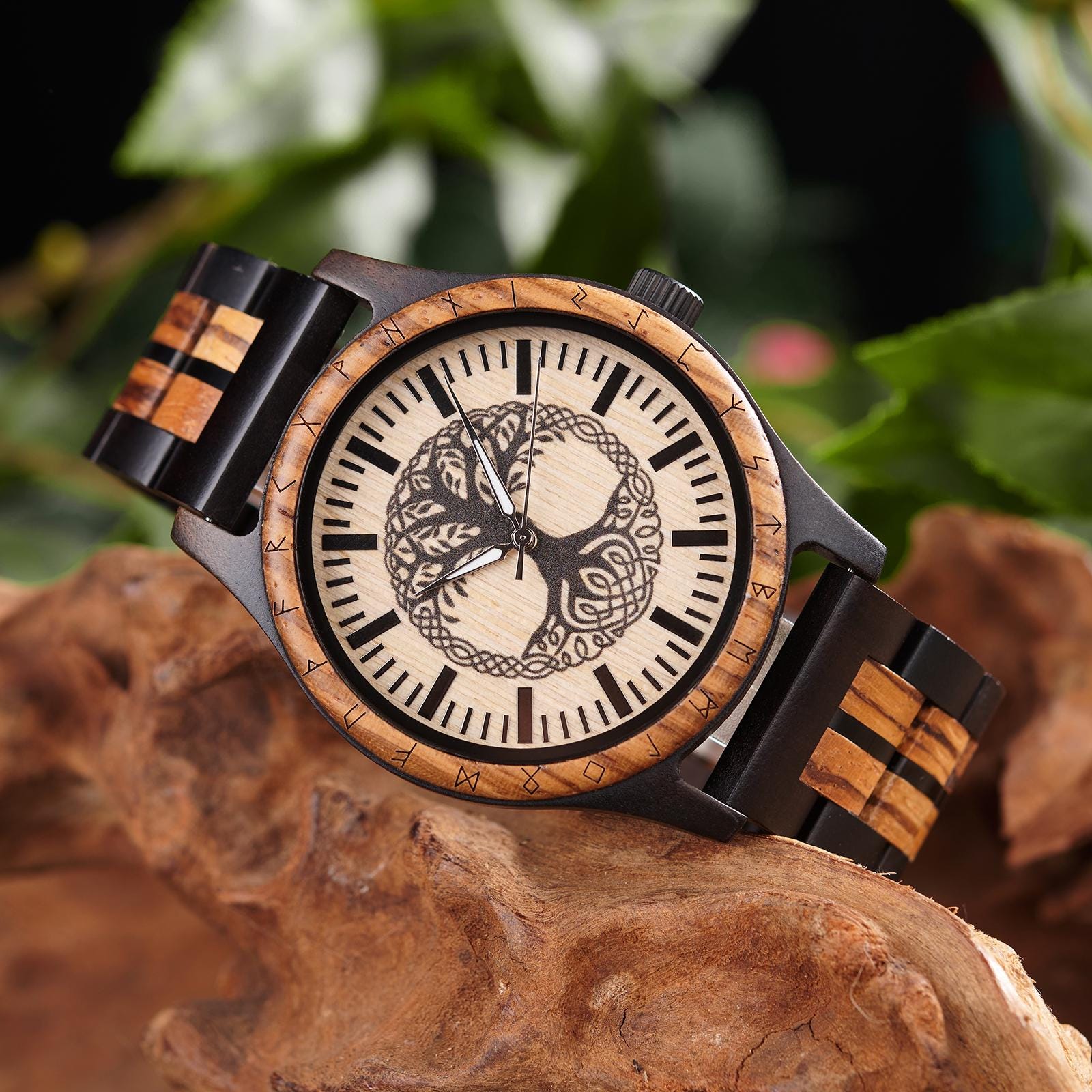 Nordische Baum des Lebens gravierte Holzuhr, personalisiertes Gesch...