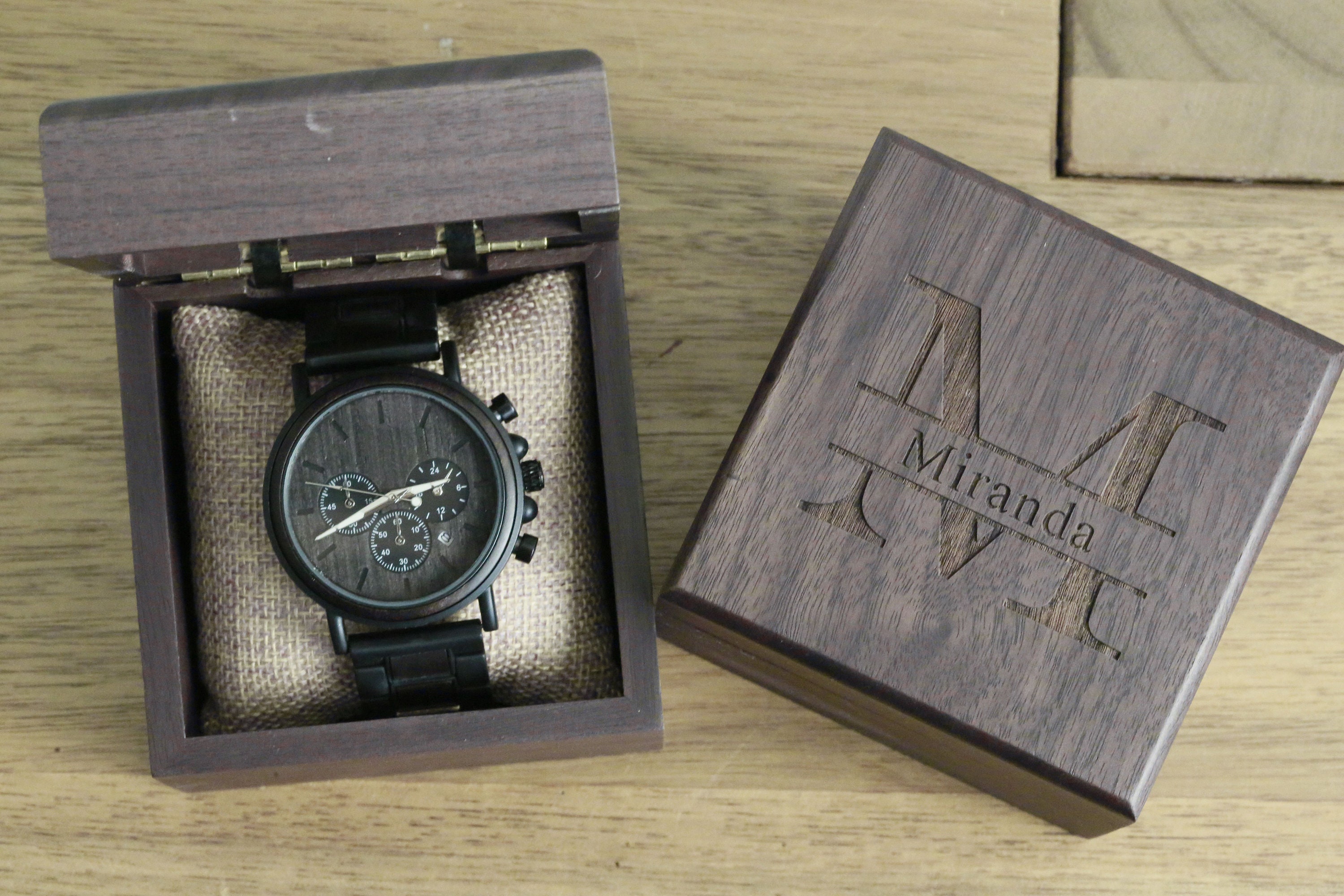 Personalisierte Holzuhr & Walnussholzbox, Personalisierte Holzu...