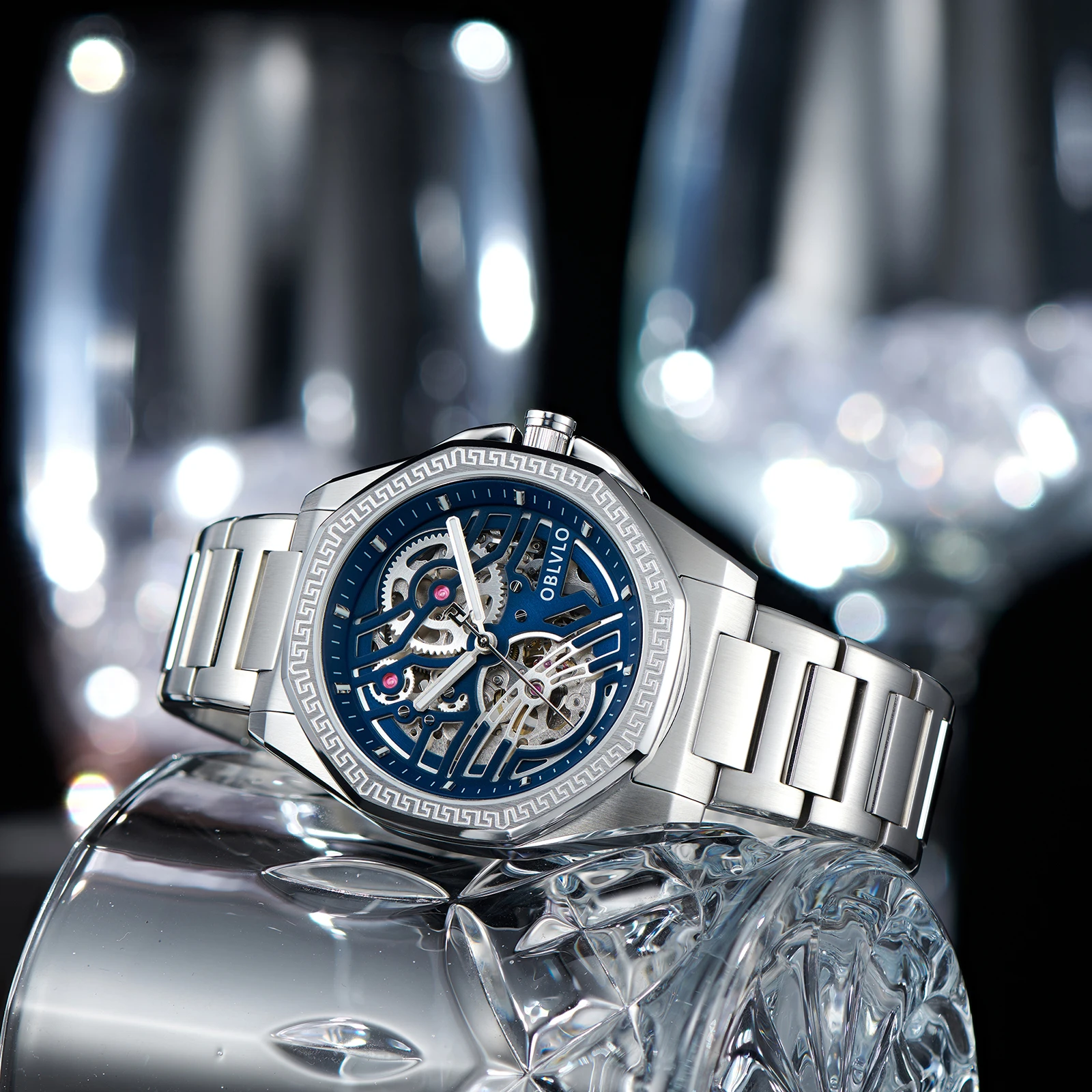 OBLVLO Skelett-Automatikuhr für Geschäftsleute, 316L-Edelstahl, analoge wasserdichte mecha...