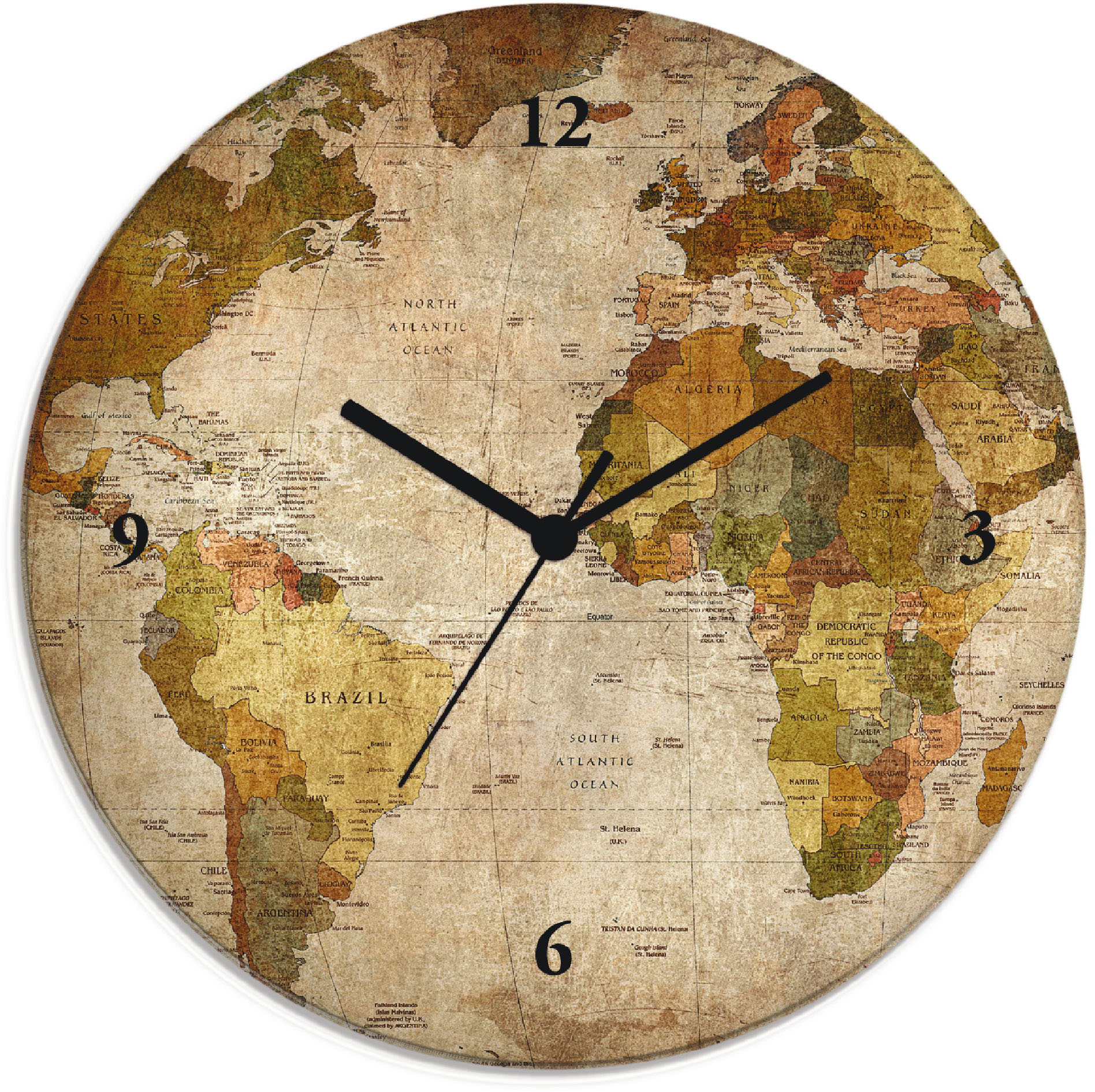 Wanduhr ARTLAND "Weltkarte", braun, T:1,8cm, Wanduhren, W...