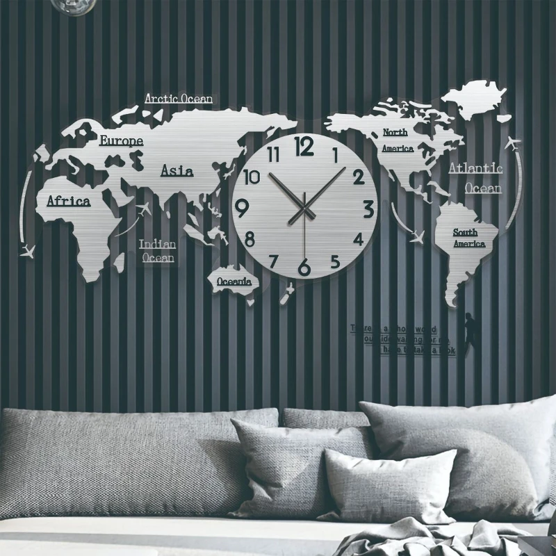 Weltkarte, moderne Wanduhr, Heimdekoration, große Wanduhr, geräuschlos, nicht tickend, Wa...