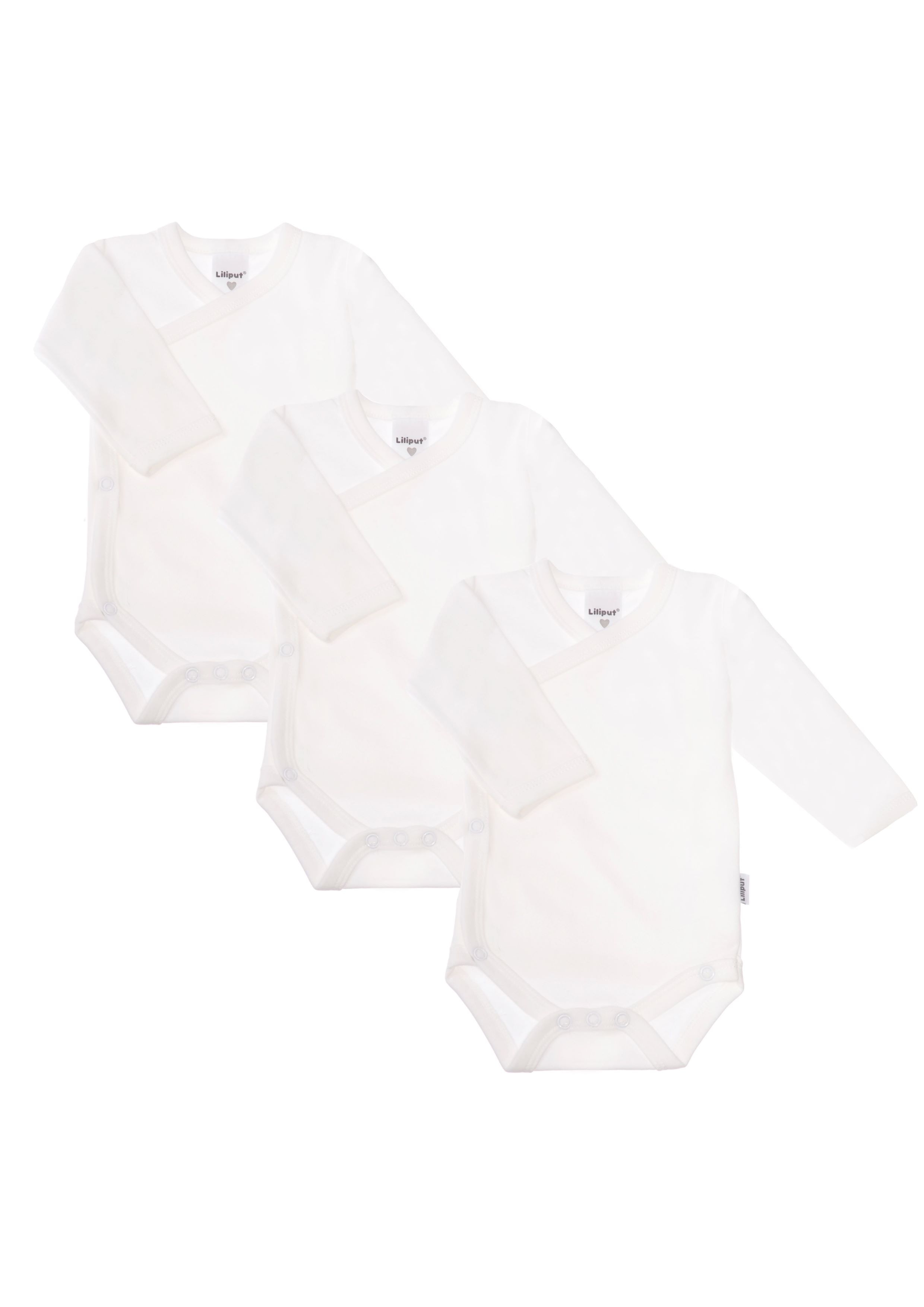Dieses praktische Set von Liliput enthält drei unifarbene Langarm-Wickelbodys aus Bio Baumwolle...