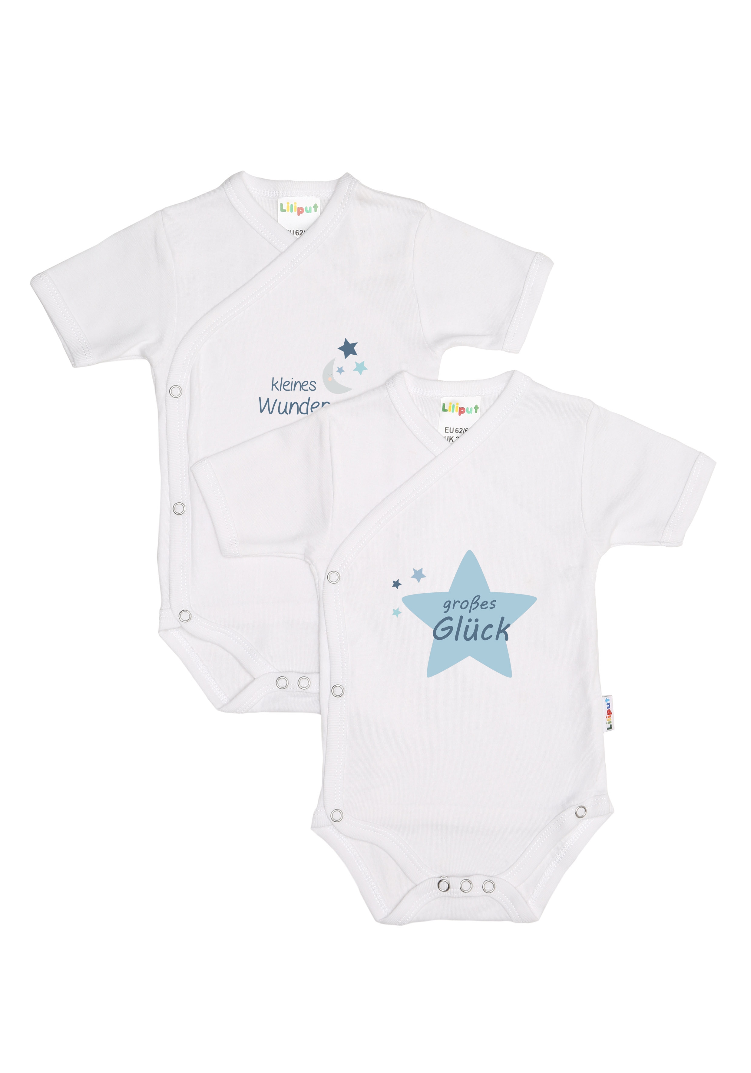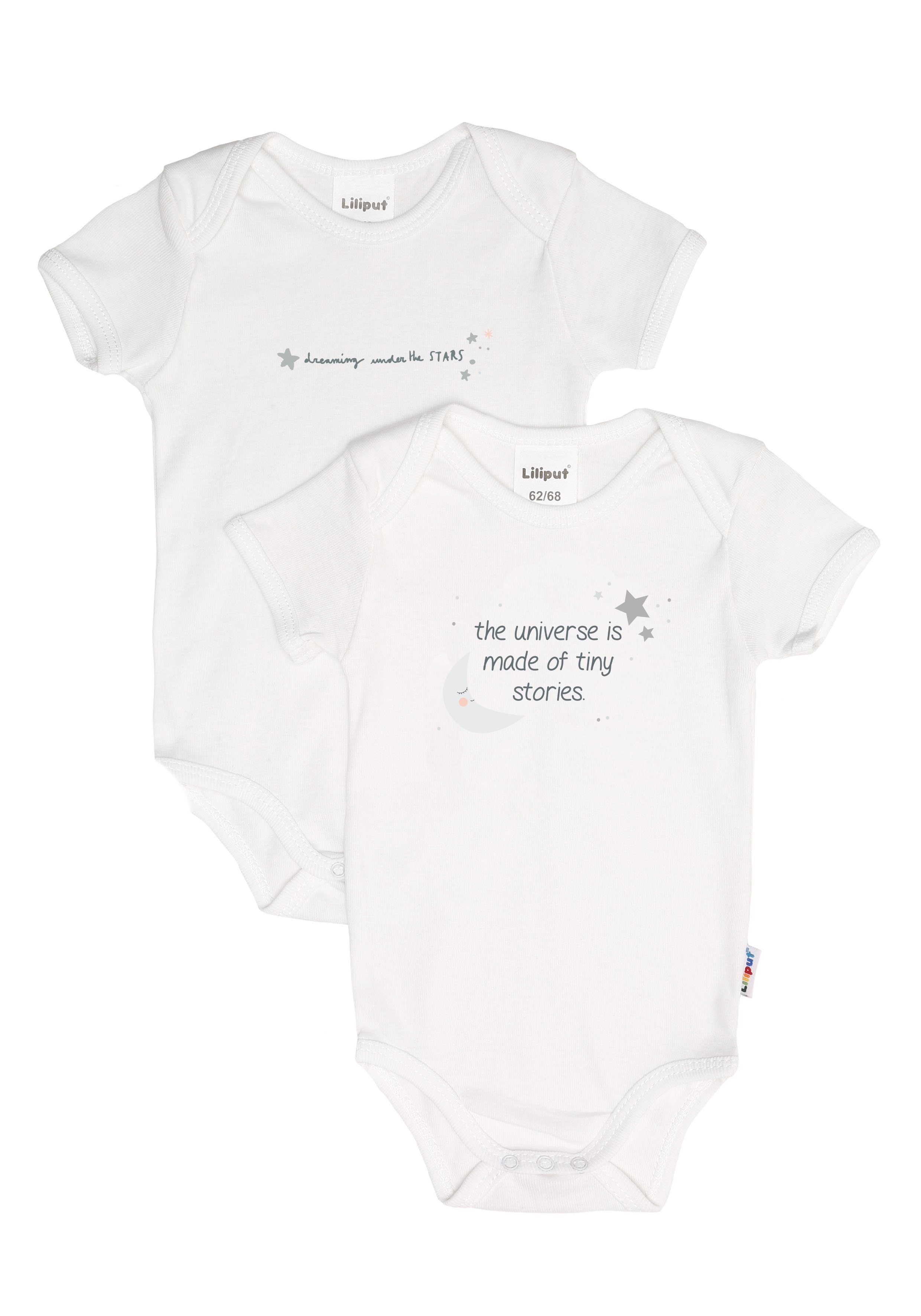 Dieses Set von Liliput enthält zwei Wickelbodies mit niedlichem Frontdruck und kurzem Arm. Die ...