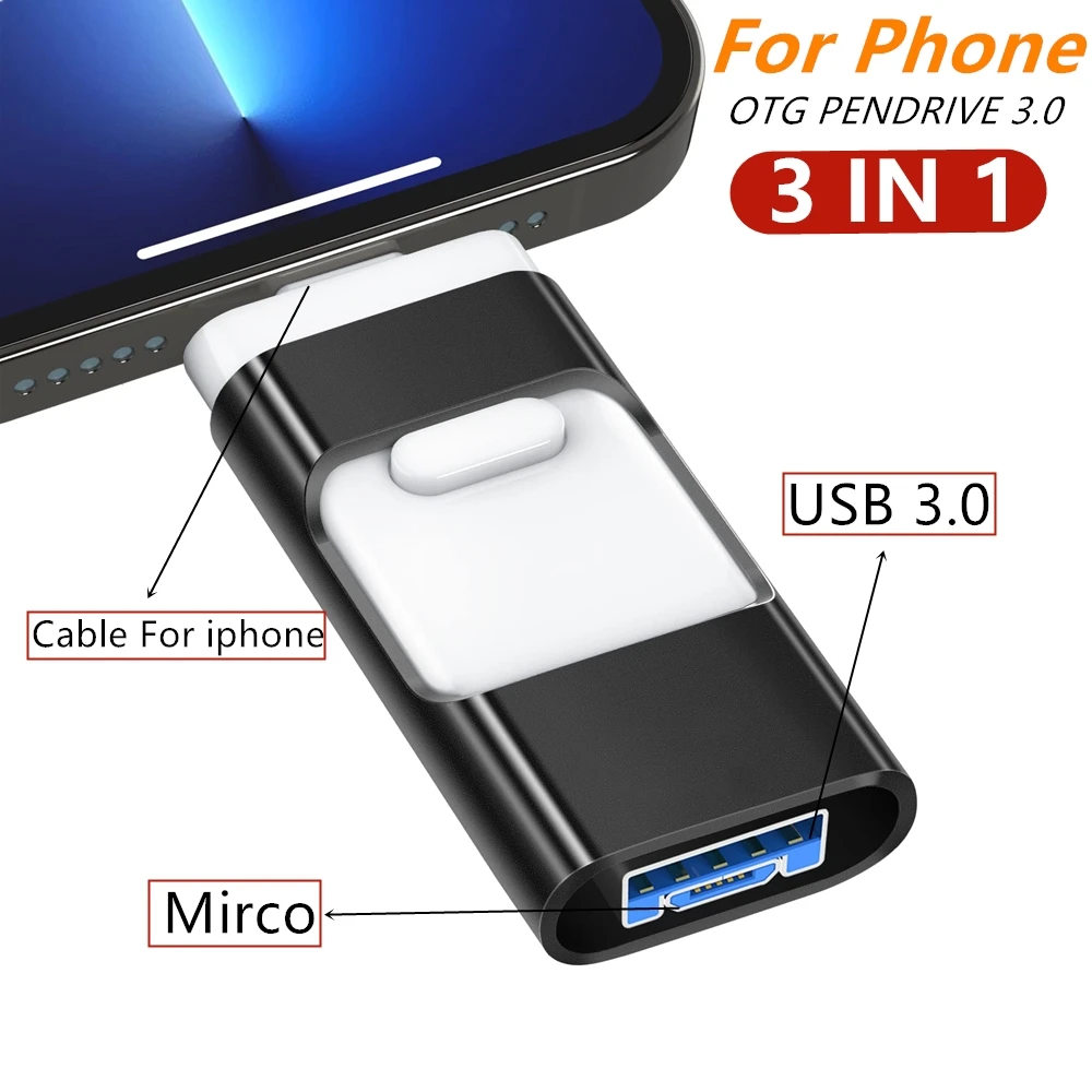 Flash-Laufwerk USB 3.0, Telefon-USB-Stick, USB-Stick 256 GB, 128 GB, 64 GB, 3-in-1-USB-Stick fü...