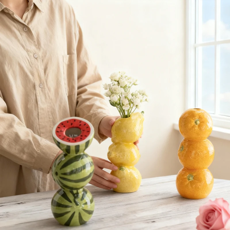 Keramikvase Orange Zitrone Wassermelone Obst Frische Blume Tischplatte Herzstück Zuhause Wohnzi...