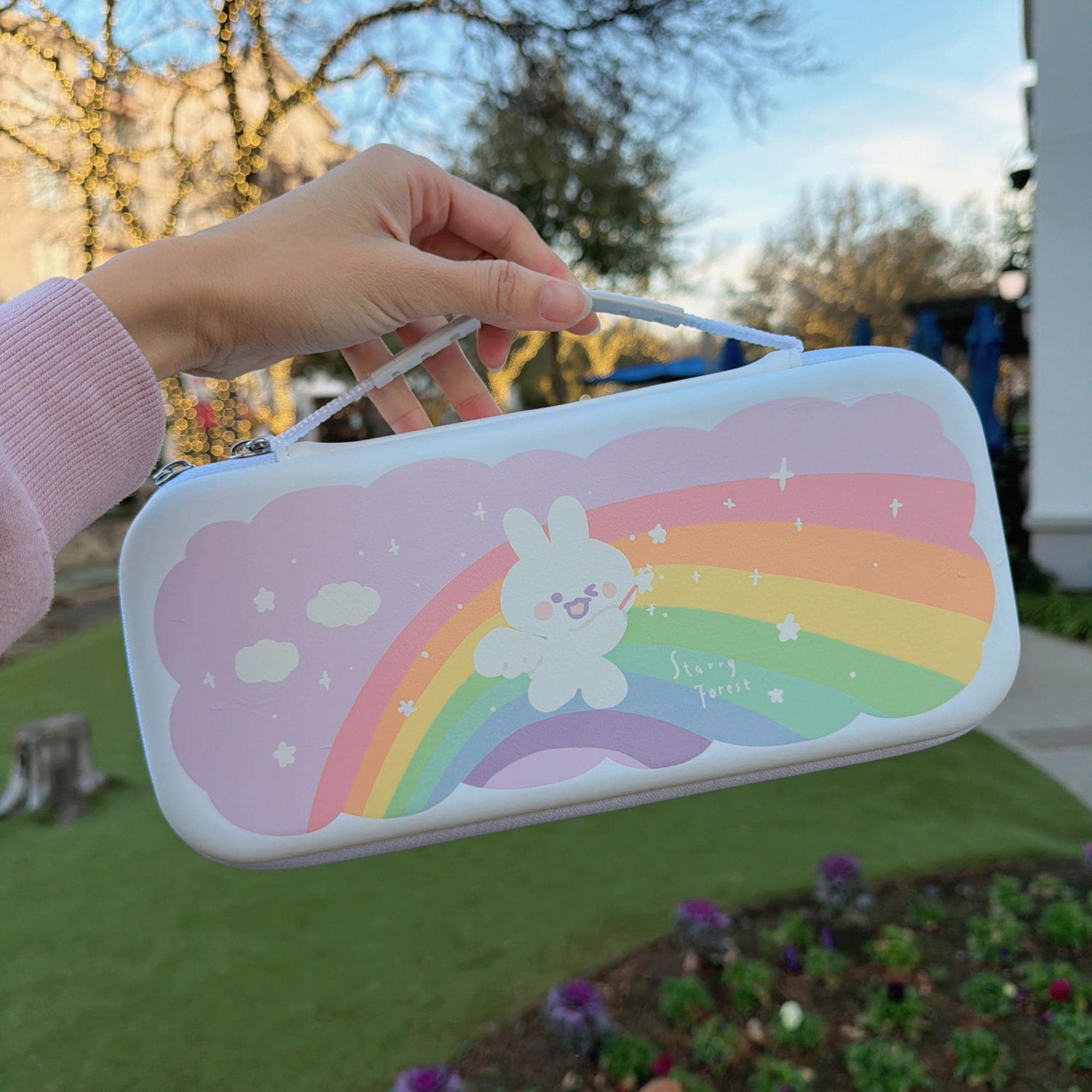 Süße Rainbow Bunny Nintendo Switch 2, original von mir illustrierte Reisehülle mit n...