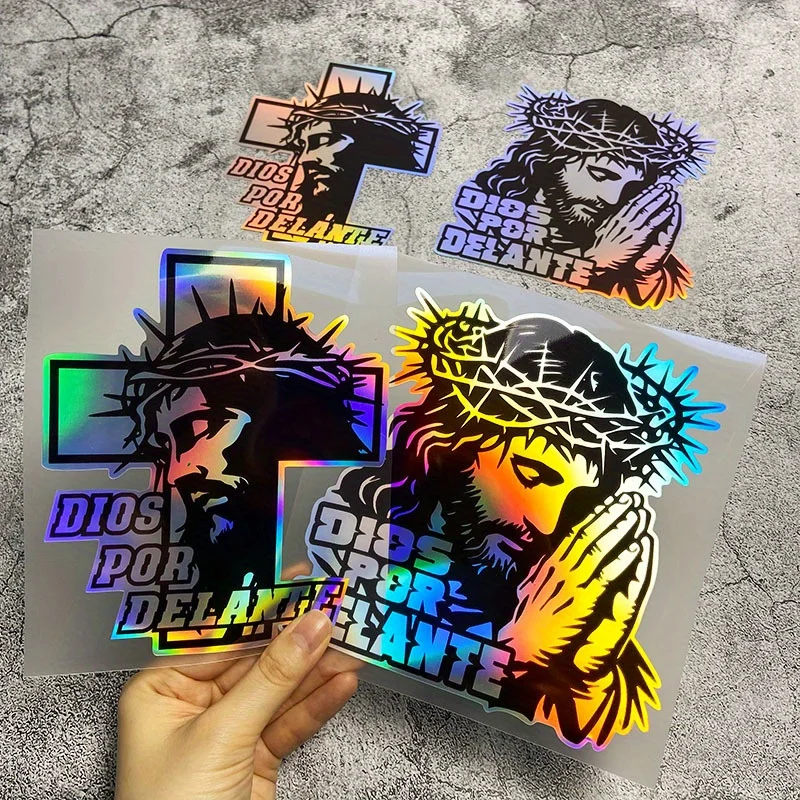 Auto-Innenaufkleber Farbe Auto Gebet Geste Laser Aufkleber Gott Jesus Christus Mode Auto Karosserie ...