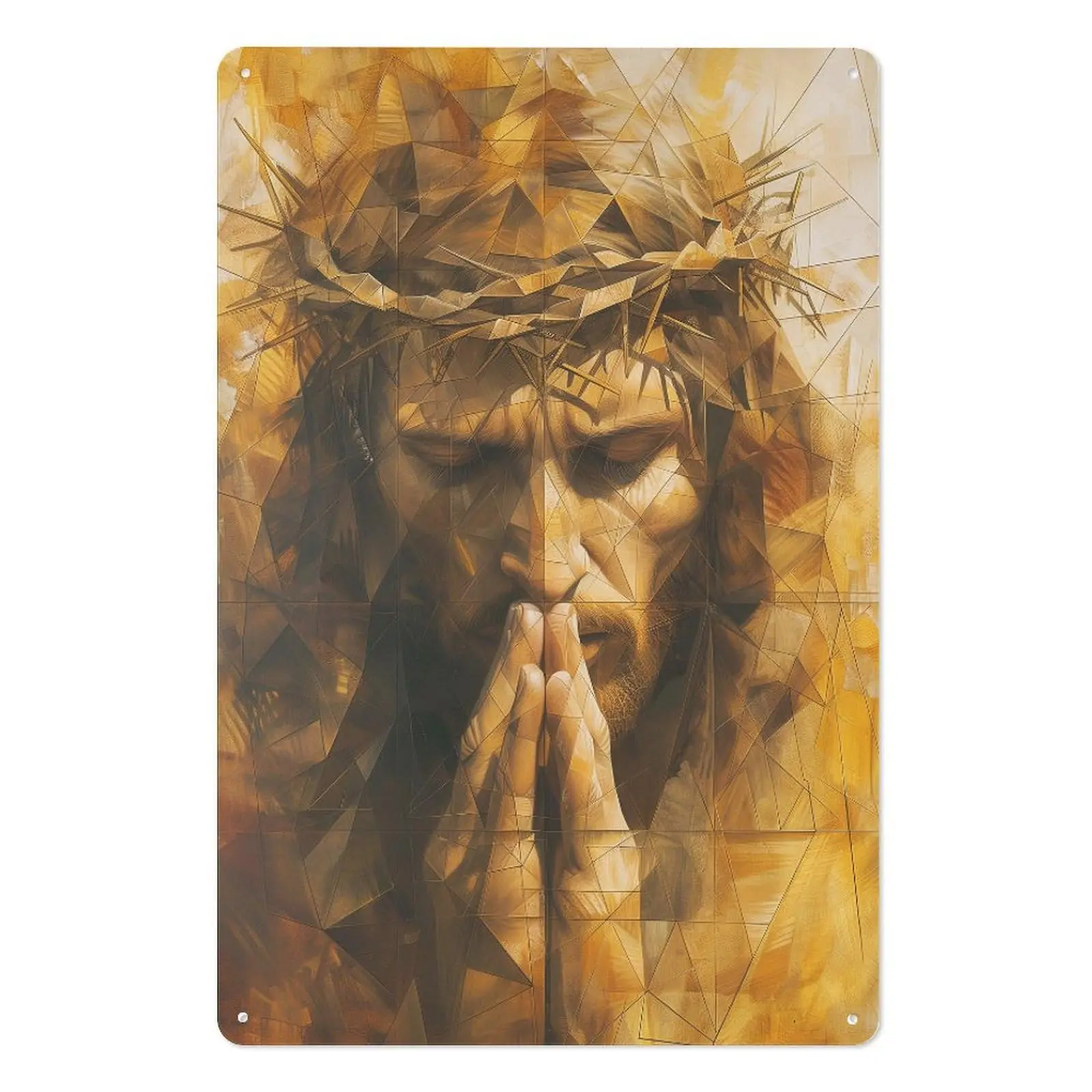 Hände beten Jesus Blechschilder Christus goldene Krone der Dornen geometrische Wandkunst Dekora...