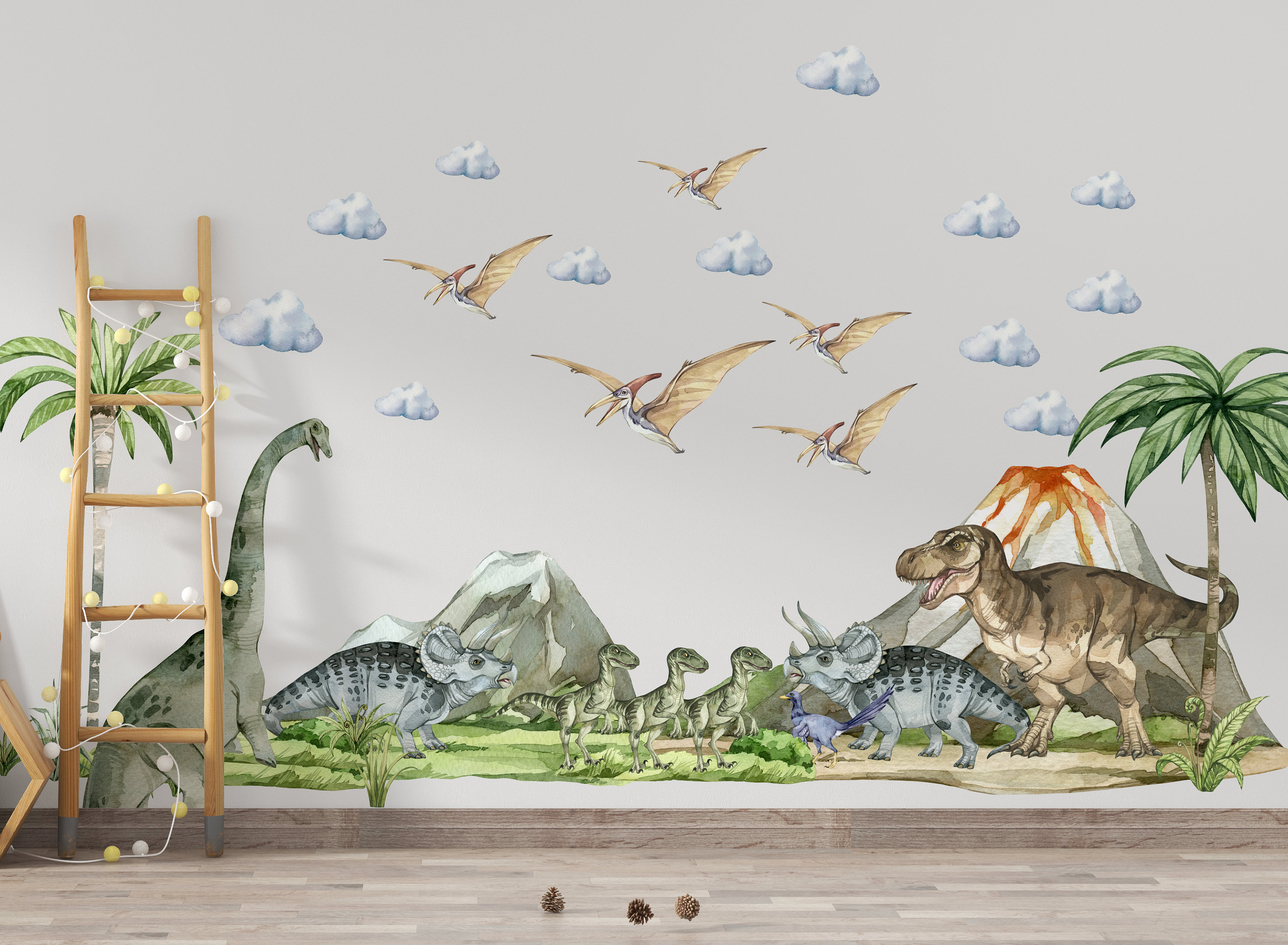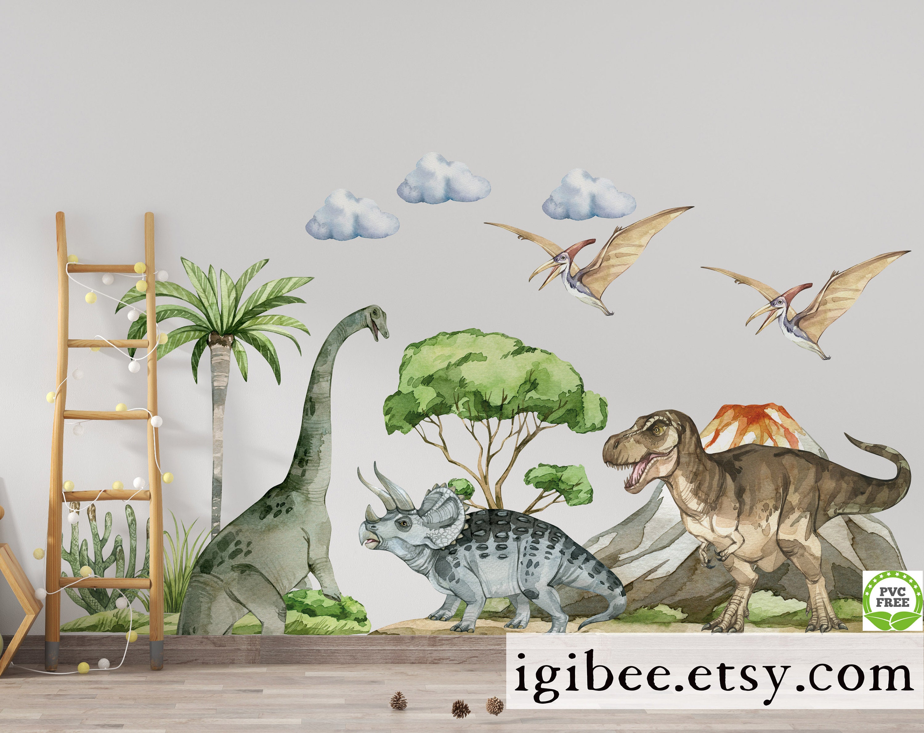 Dinosaurier-Wandtattoo, Aquarell Dinosaurier-Kinderzimmer-Wand-Aufk...