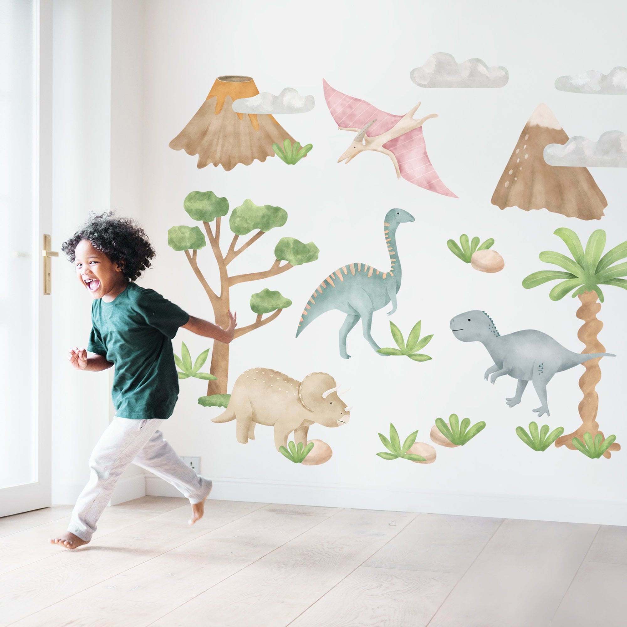 Dinosaurier-Wandaufkleber, Aquarell Dinosaurier-Kinderzimmer-Wandta...