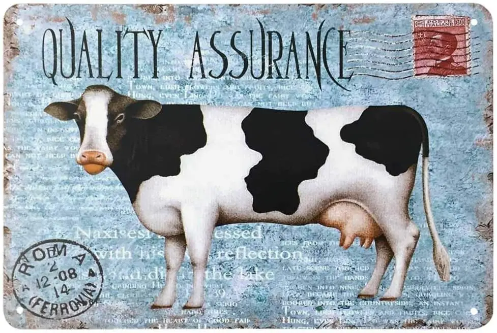 Lustiges süßes Kuh-Blechschild, Postkarte, Bauernhof, Milch, Schwarz, Weiß, Blau, V...