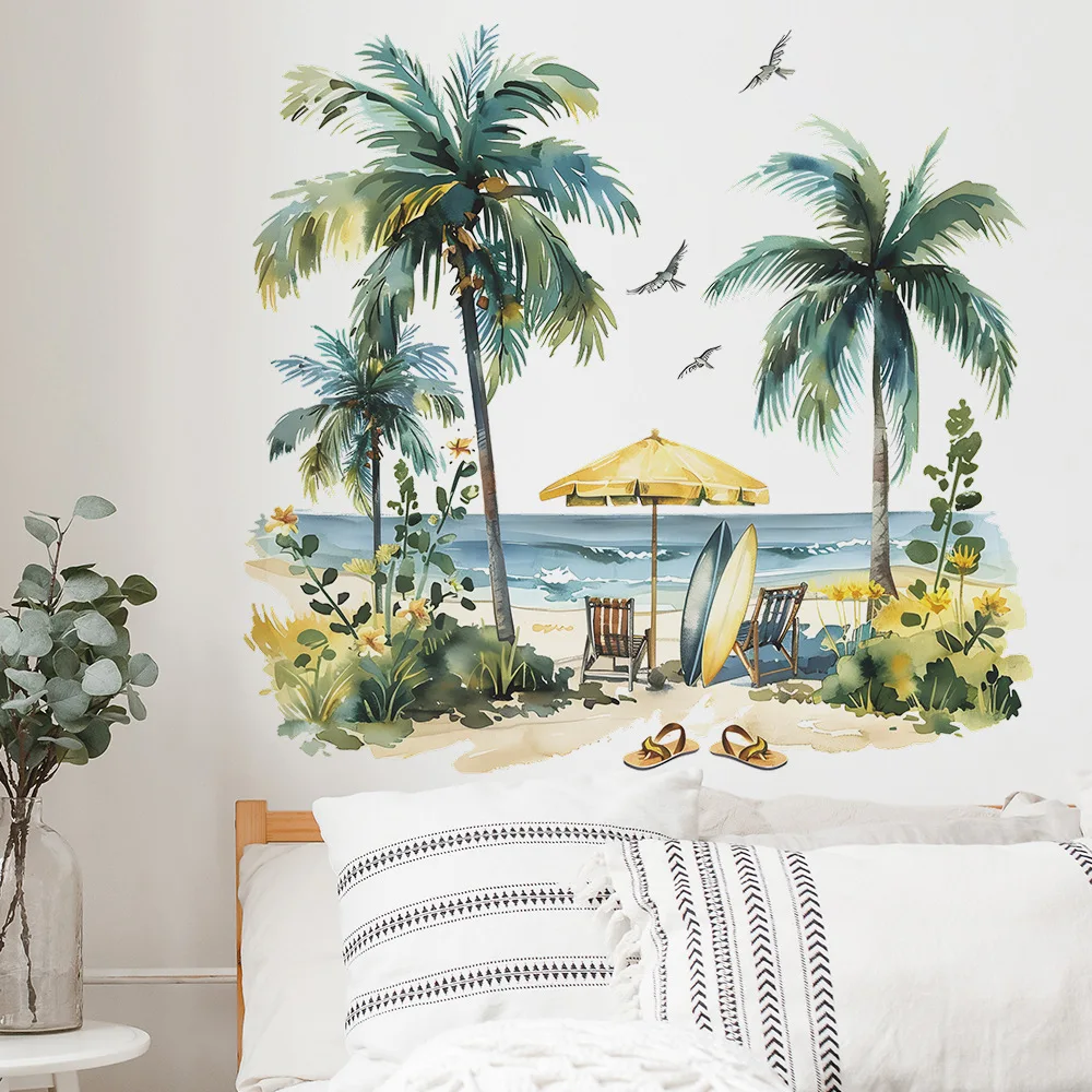 2 Stück gemalt Sommer Strand Kokosnuss baum Studie Wohnzimmer Veranda nach Hause Versch ön...