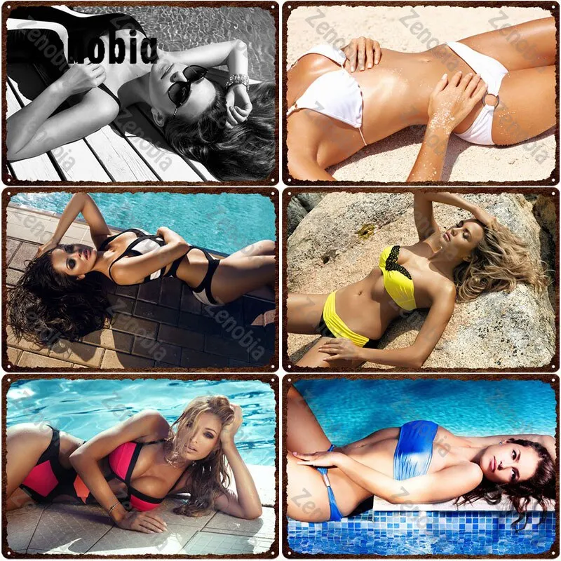 Sexy Bikini Frau Metall Poster Schöne Mädchen Blechschild für Männer Höhle ...