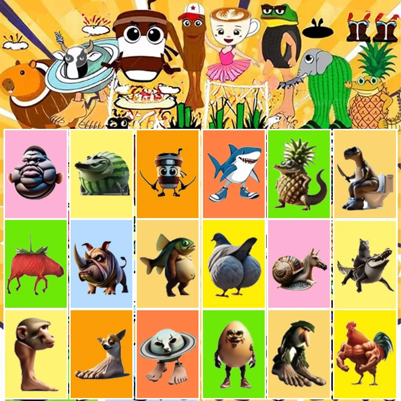 60 Stück italienische Brainrot-Aufkleber, Hai, Katze, Elefant,...