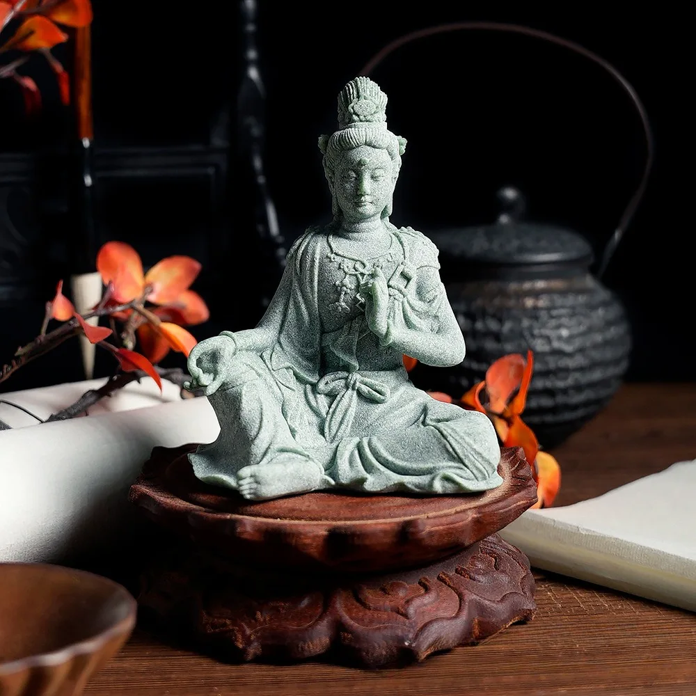 Miniatur Guan Yin Statue Buddha Figur Stein Meditieren Zen Fisch Aq...