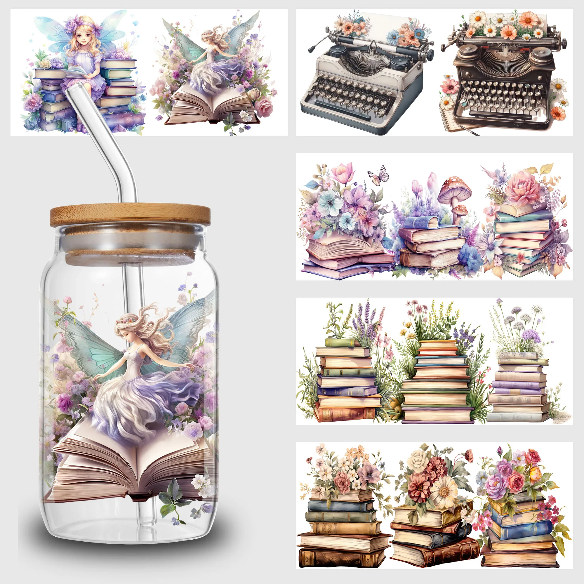 5 Blatt Buch- und Blumen-UV-DTF-Tassenaufkleber, Glas-DTF-Transfera...