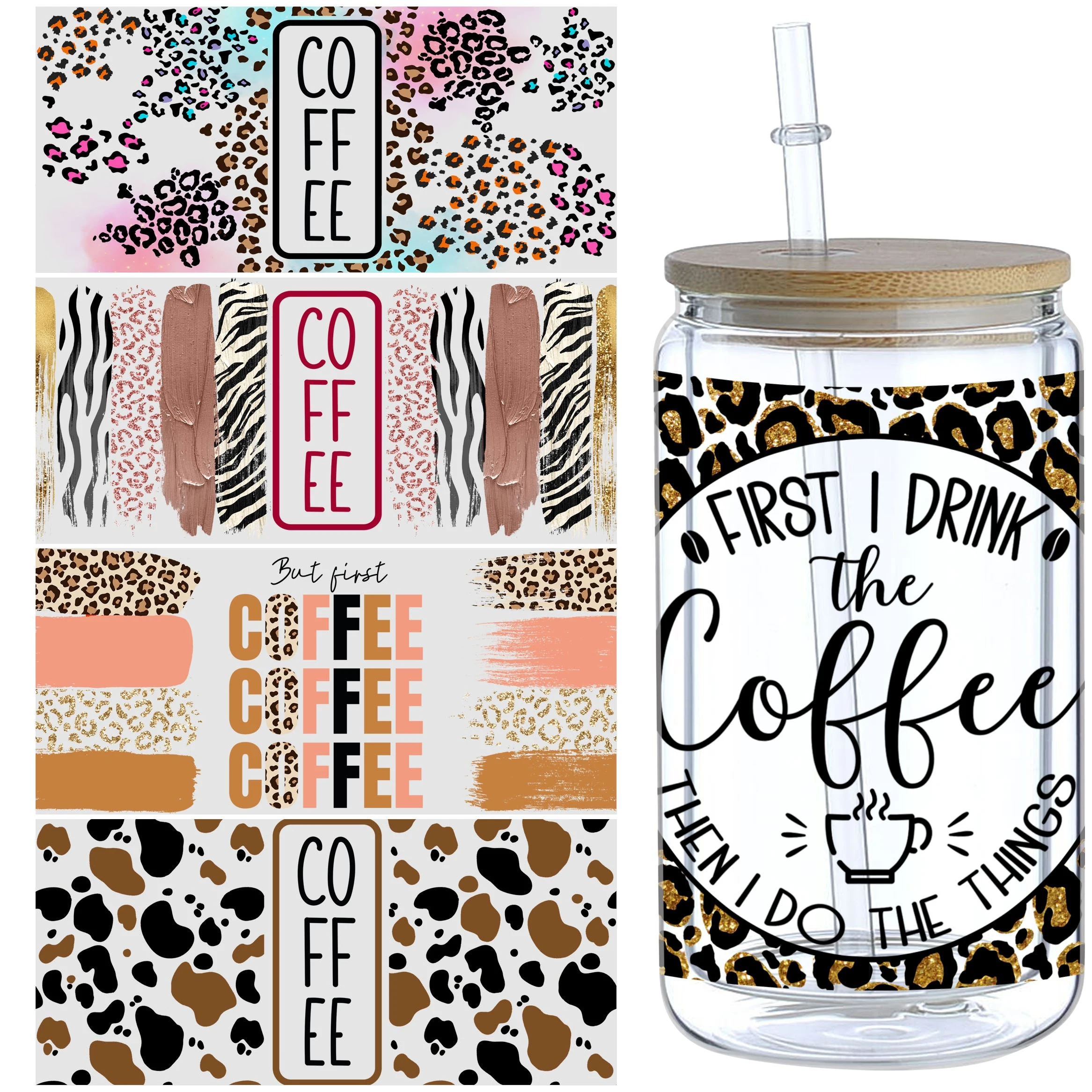 5 Blatt Kaffee UV Dtf Tasse Aufkleber, Glas Bewegung Dtf Transfer Aufkleber wasserdicht Wipe-On Tran...