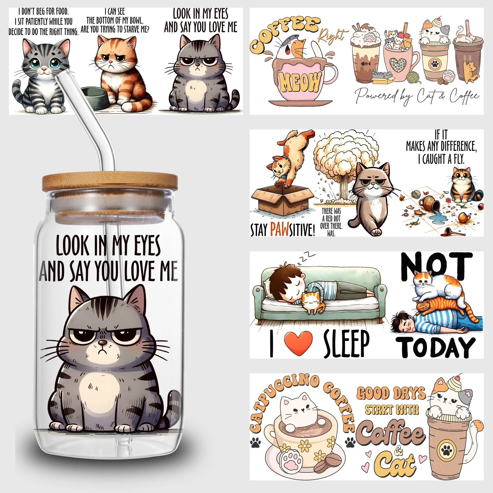 5 Cat UV Dtf Cup Aufkleber, Glas Cup Dtf Transfer Aufkleber, wasserdichte lustige Katze Wipe-Off Tra...