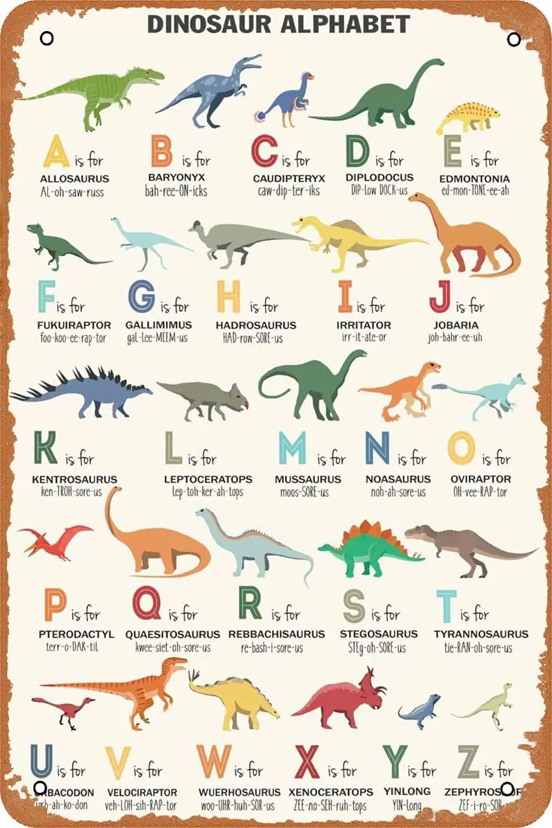 Dinosaurier Alphabet Poster Metall Zinn Zeichen Wand Dekor Zeichen,...