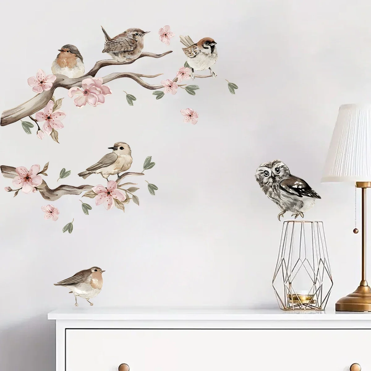 1 Stück Aquarell Zweig Birdie Wandaufkleber Schlafzimmer Dekor...