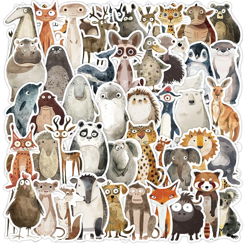 50PCS Seltsame Tier Aquarell Malerei Aufkleber Ästhetische Lap...