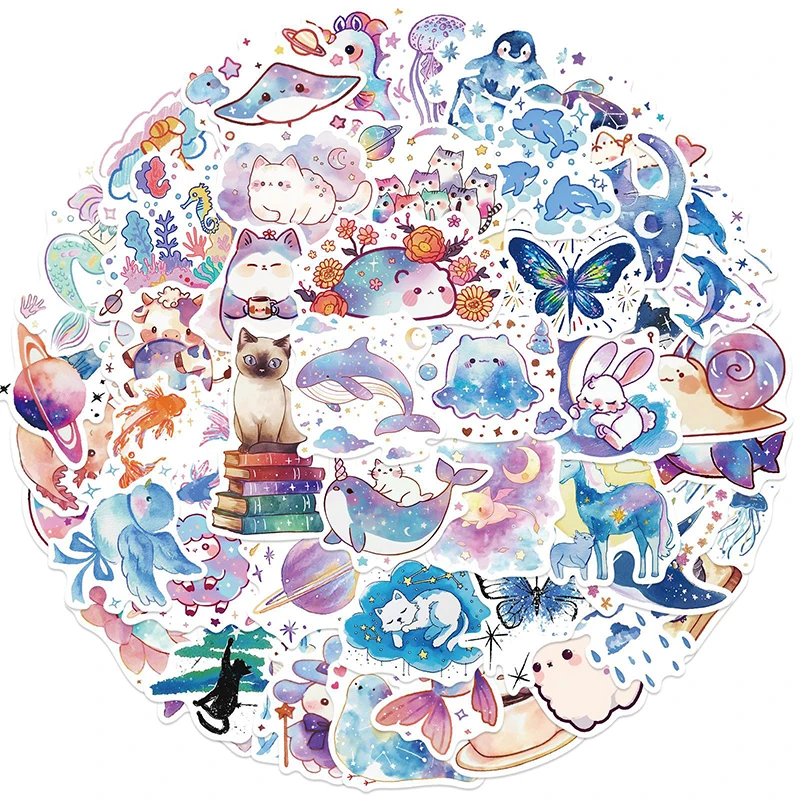 53 Stück Aquarell-Tier-Aufkleber, niedliche Cartoon-bunte Tier-Aufkleber, ästhetische wass...