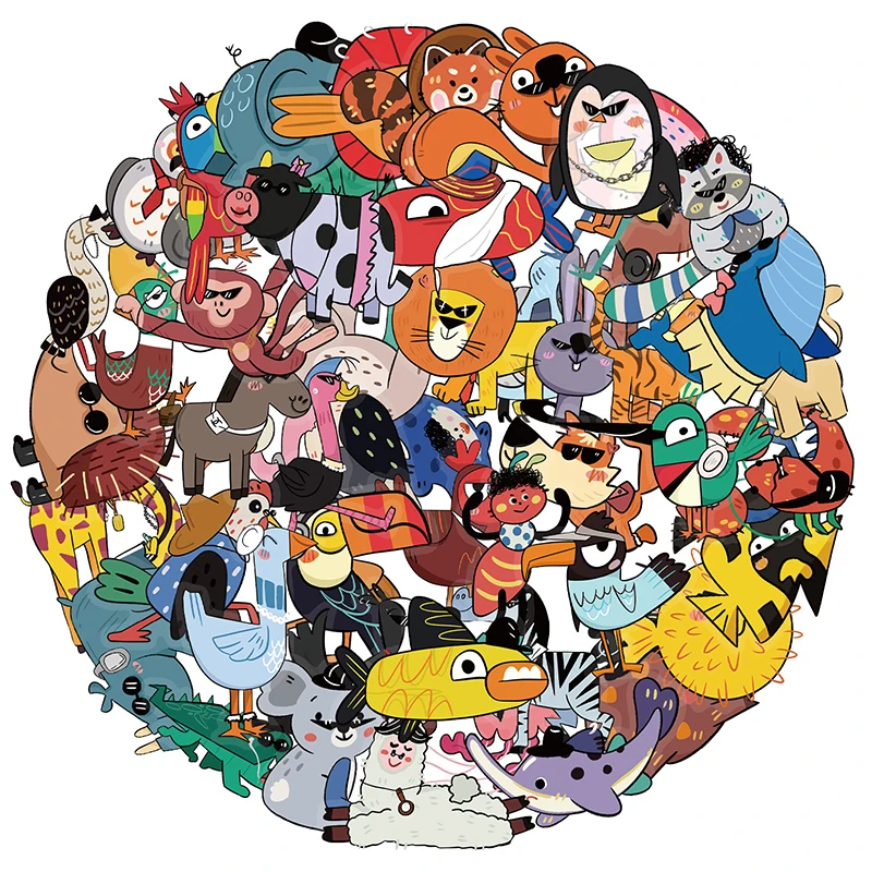 50 Stück niedliche Tier-Aufkleber, bunte Tier-Aufkleber, modische Zoo-Tiere, Vinyl, wasserfeste...