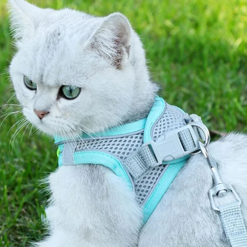 Katzen geschirr Leinen Set Soft Mesh Geschirr verstellbare Katzen weste mit reflektieren den Trä...