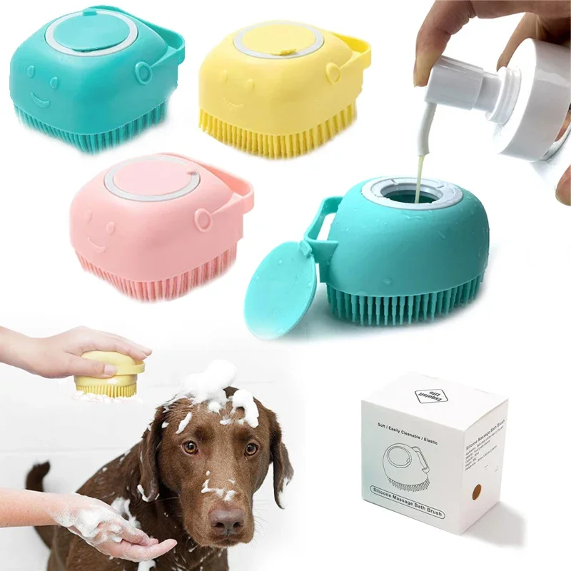 Weiche Silikon-Hunde-Shampoo-Bürste mit Seifenspender, langer ...