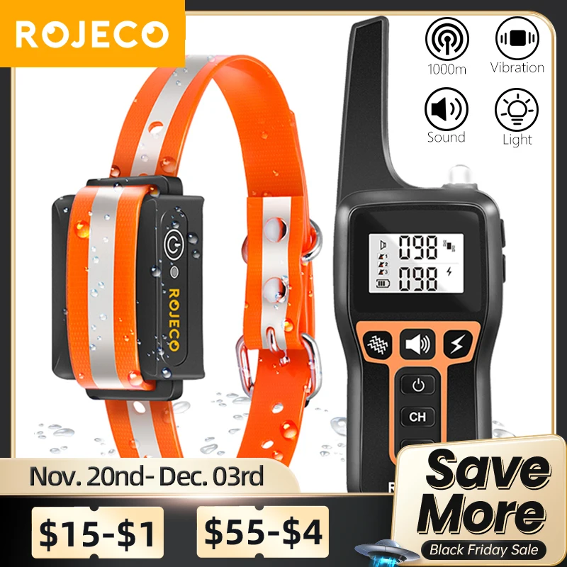 Rojeco 1000m elektrisches Hunde trainings halsband Fernbedienung Trainings halsband für wiedera...