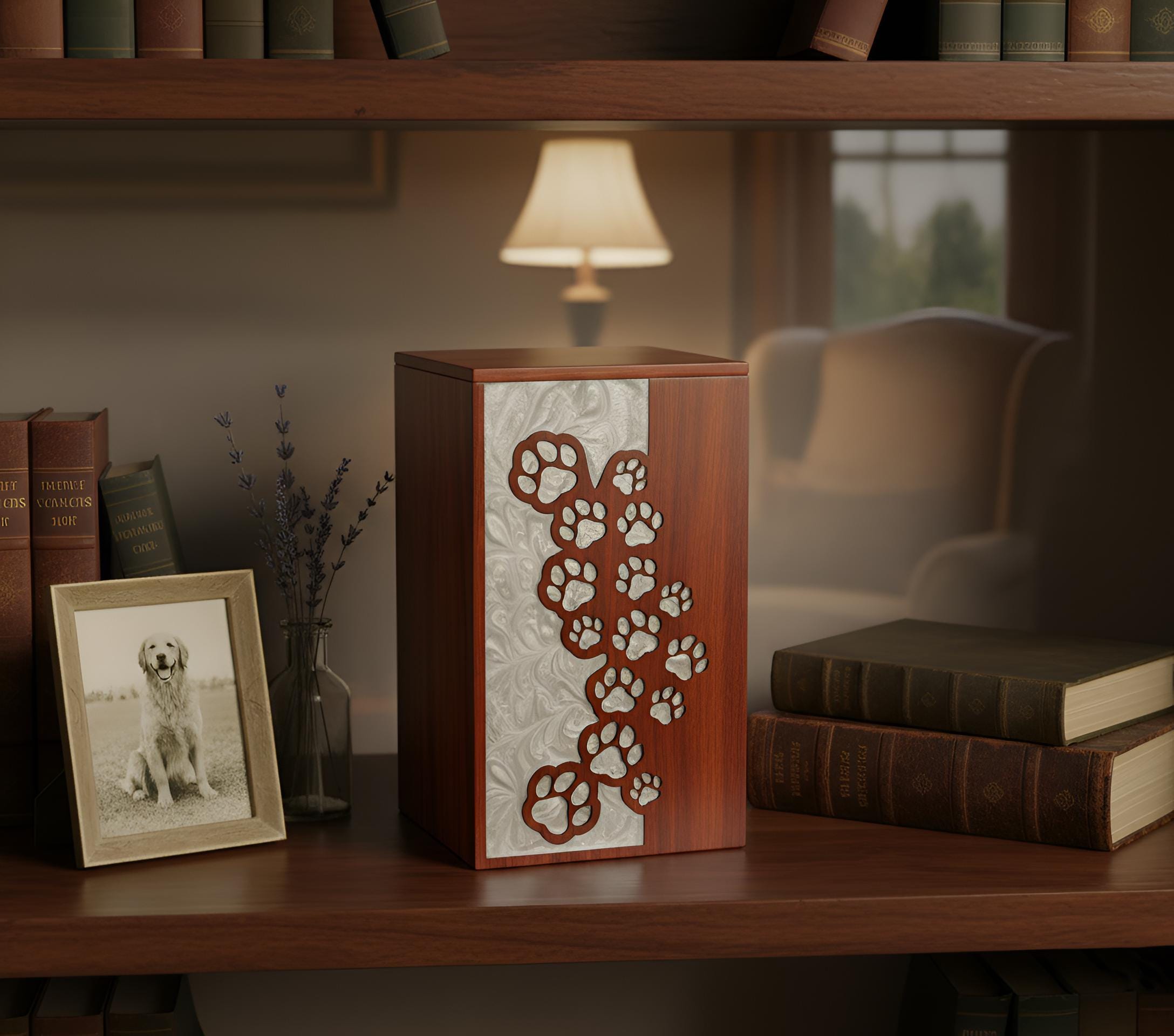 Wooden Cremation Urn for Dog or Cat Ashes - Epoxy Resin Pet Memoria...