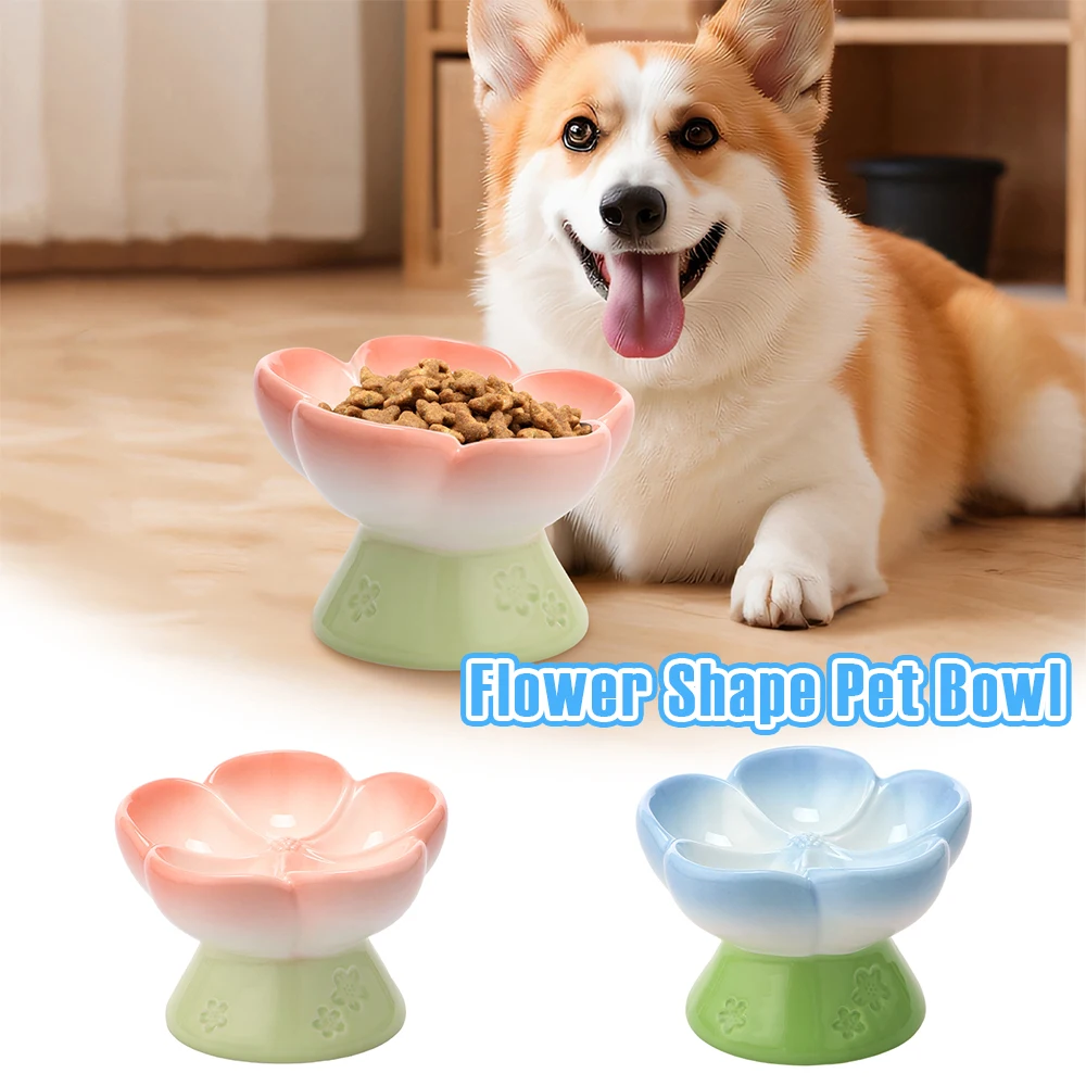Blumenförmiger Futternapf aus Keramik, erhöhter langsamer...