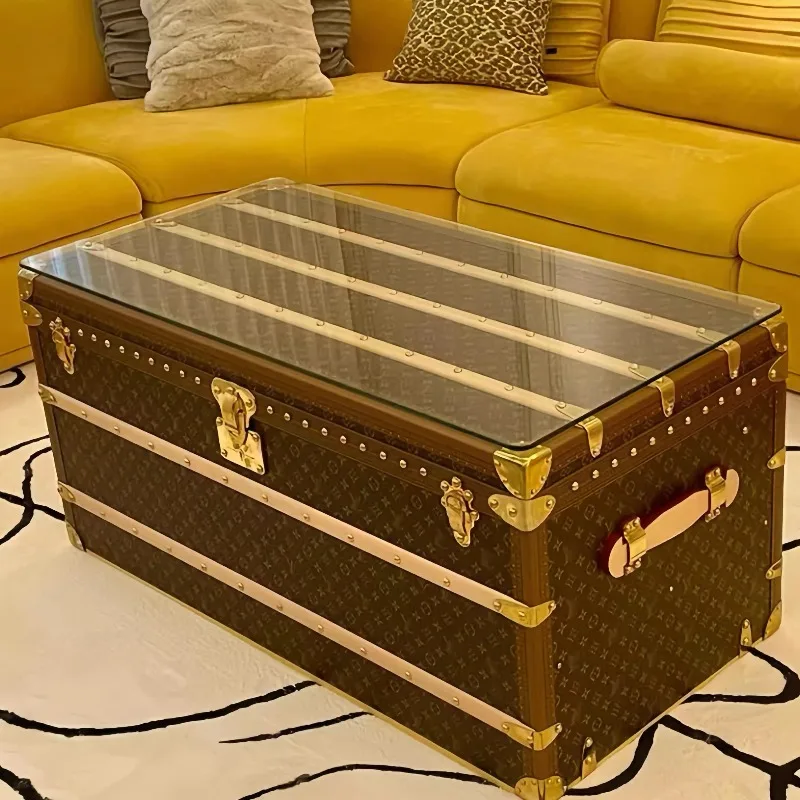 Klassischer Couchtisch mit alten Blumen, Aufbewahrungsbox aus massi...