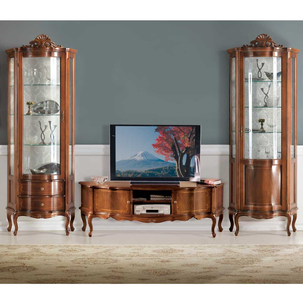 Barock Wohkombination mit Nussbaum furniert 325 cm (dreiteilig)