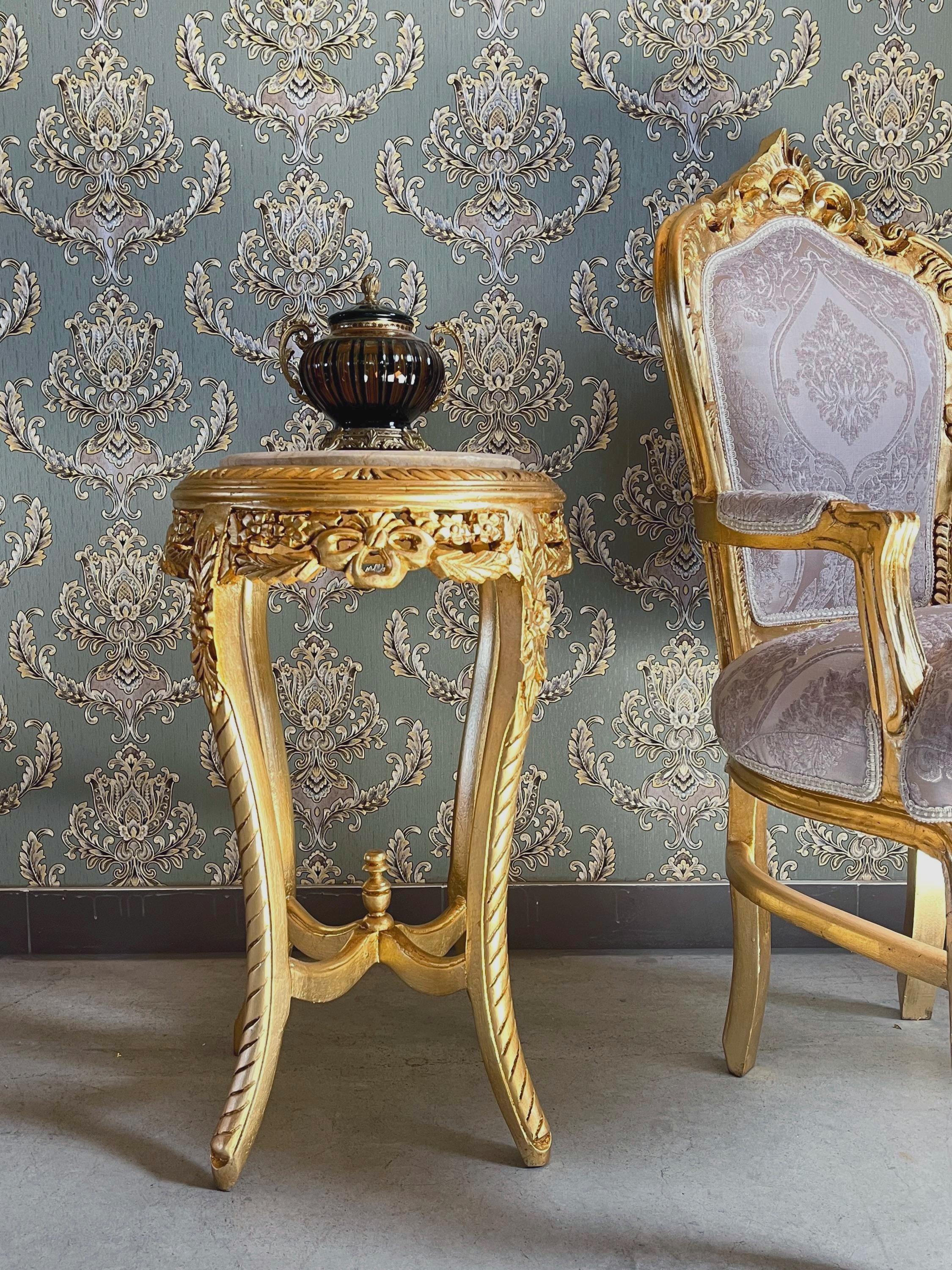 Retro Barock Rokoko Stil Marmor Top Beistelltisch - Gold Finish