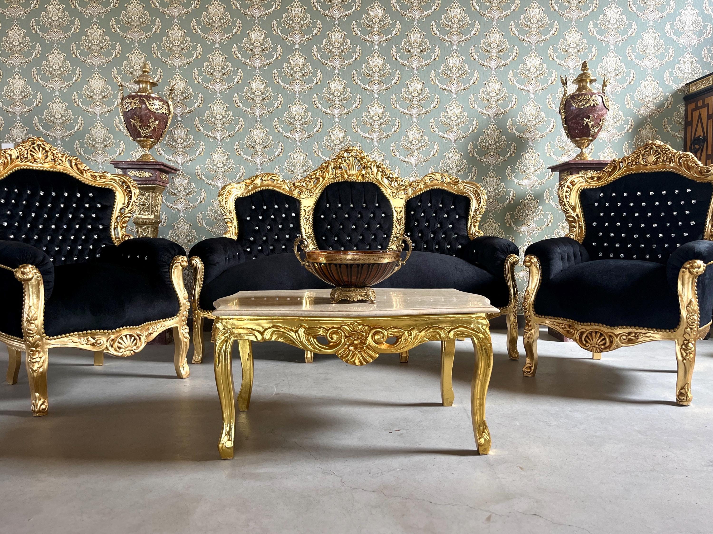 Sofa Set Louis XV Barock-Stil Black Samt getuftet Rückenlehne ...