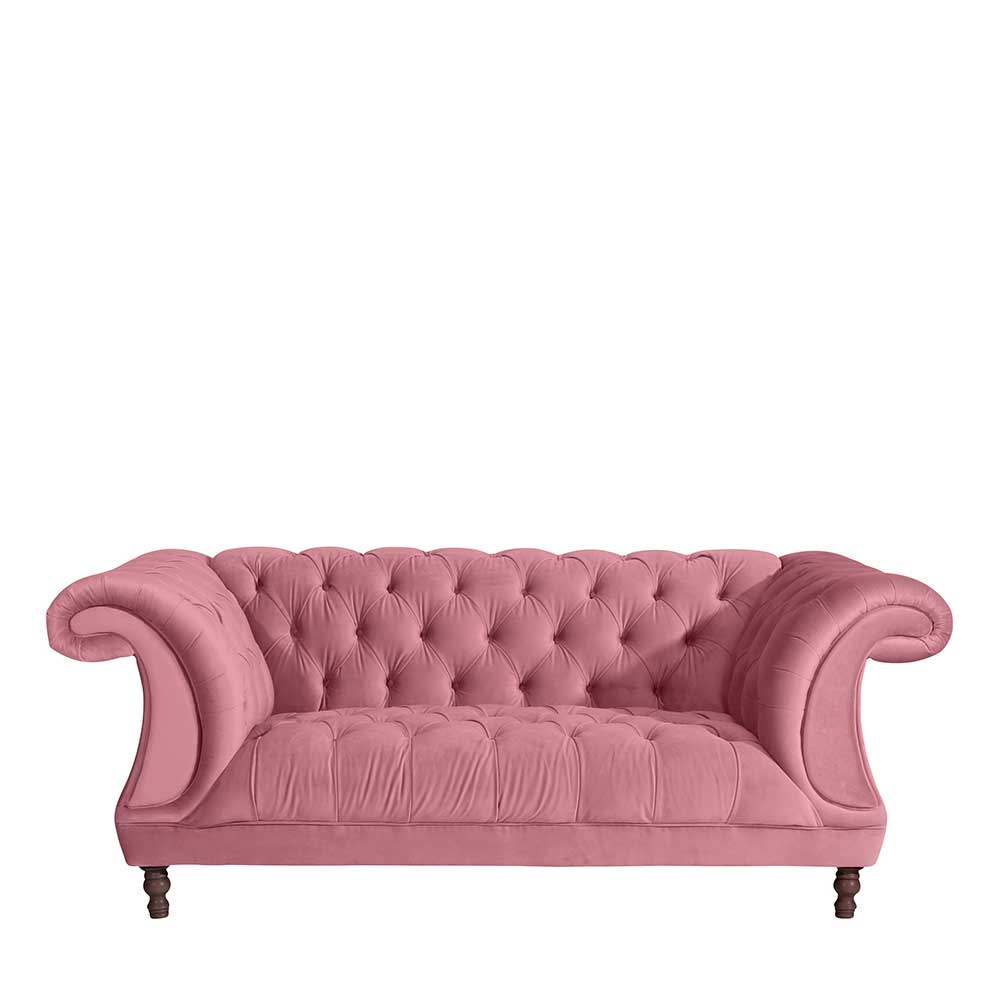 Neo Barock Couch rosa aus Samtvelours Vierfußgestell aus Holz