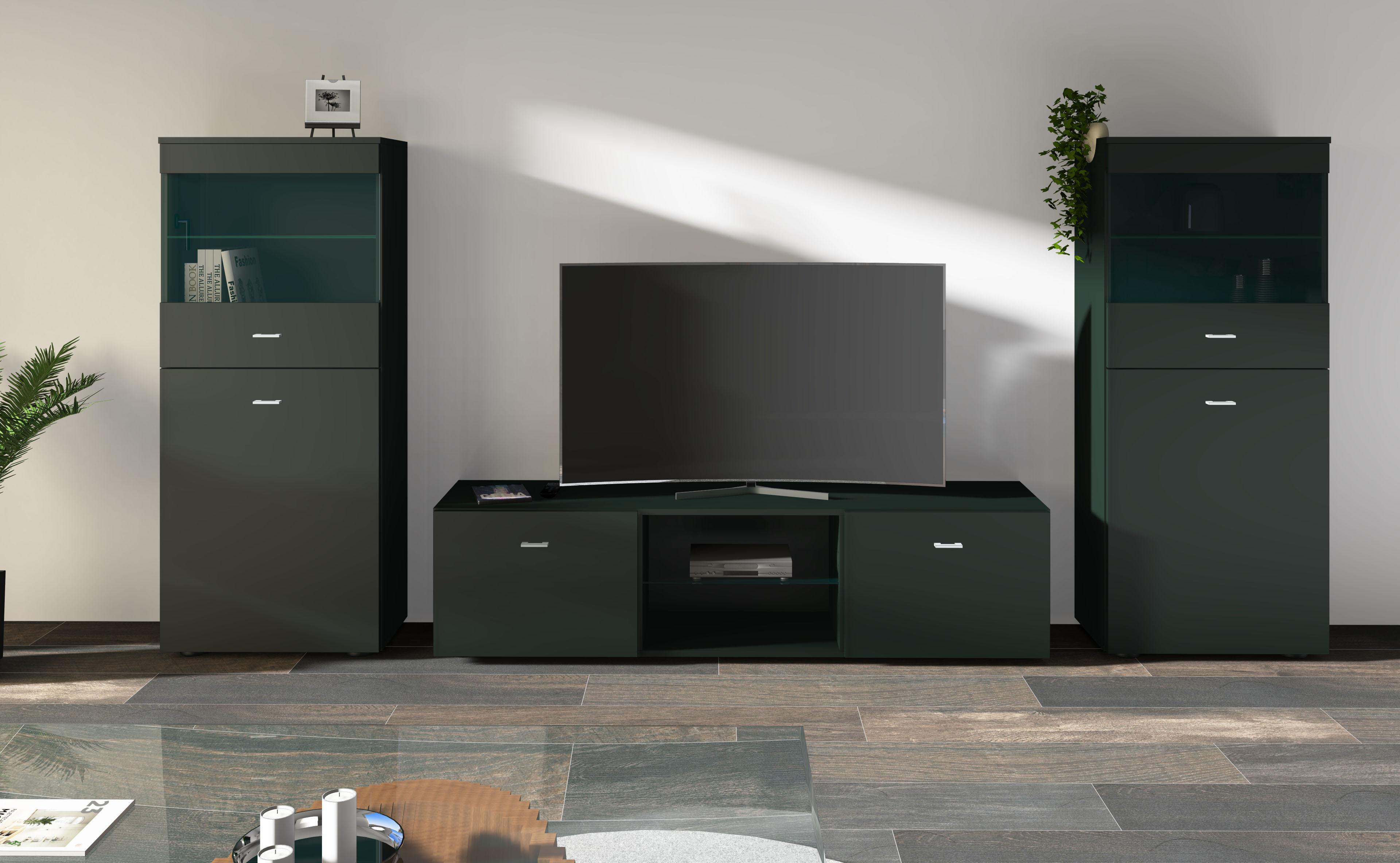 Produktdetails: Set beinhaltet: TV-Wand, Made in Germany (3tlg.). Moderne, topaktuelle TV-Wand. Vari...